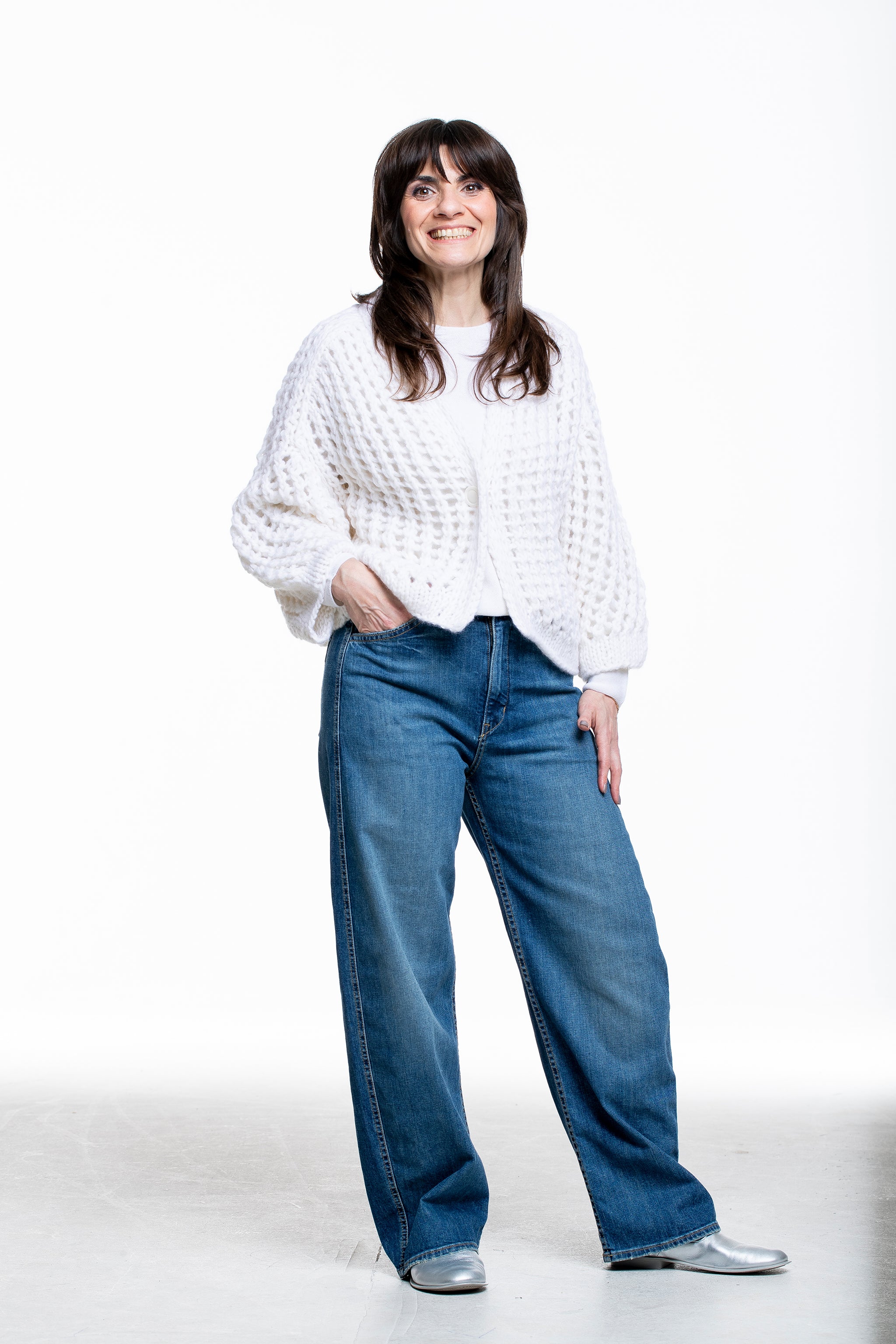 Iris von Arnim Damen Kaschmir Baumwolle Handstrick Cardigan off white