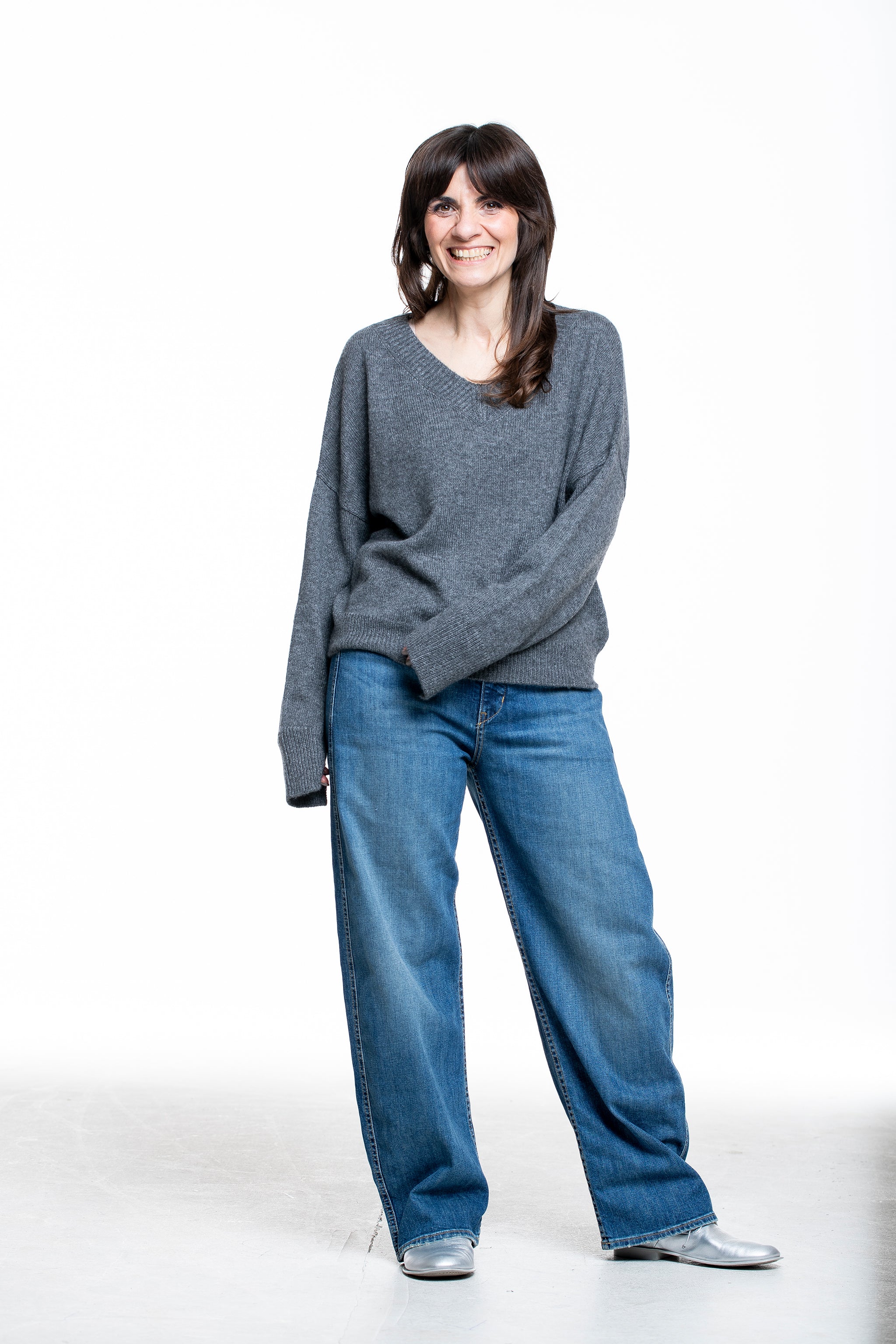 Iris von Arnim Damen Kaschmir Seide V-Neck Pullover anthrazit