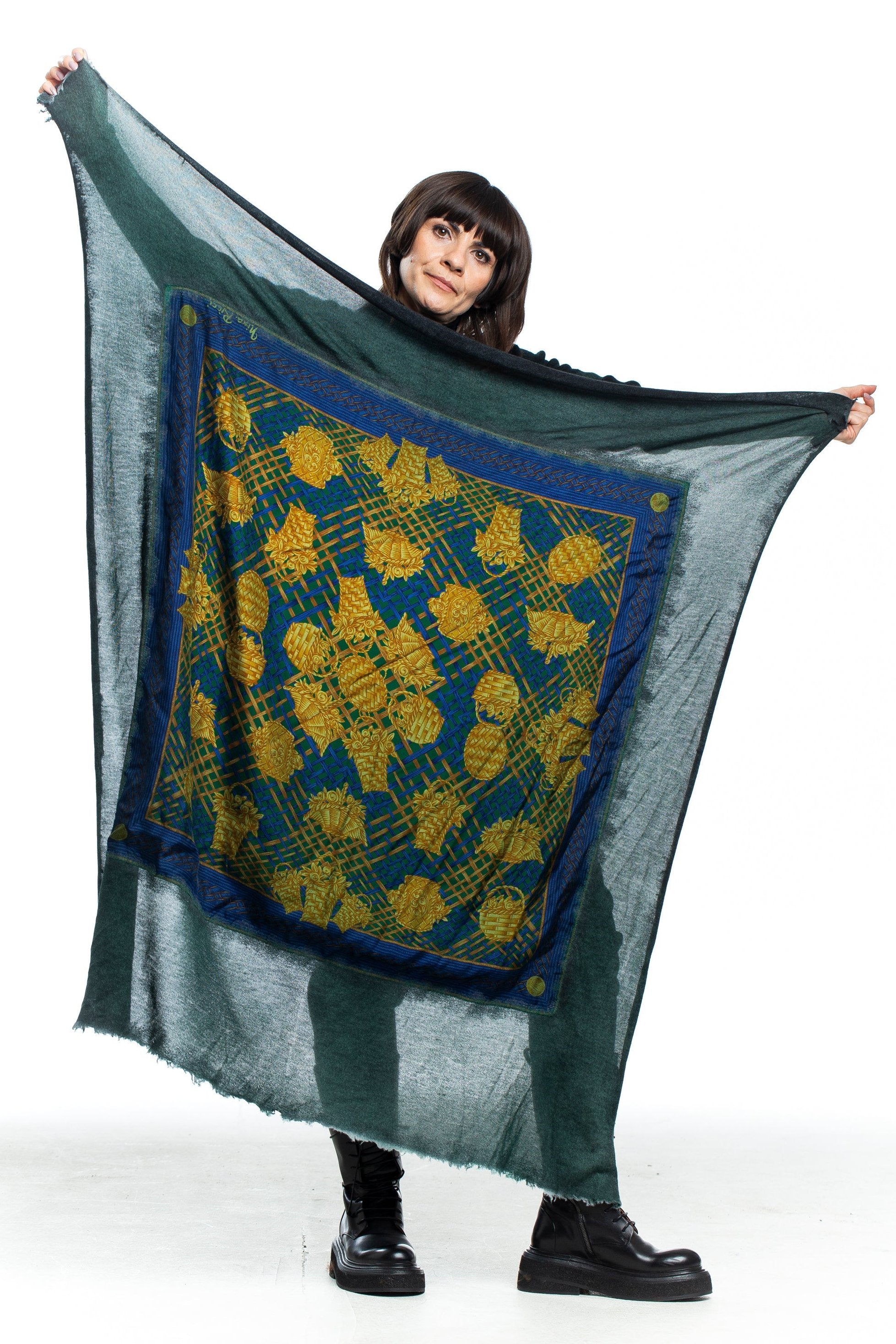 AVANT TOI cashmere silk scarf with print green blue