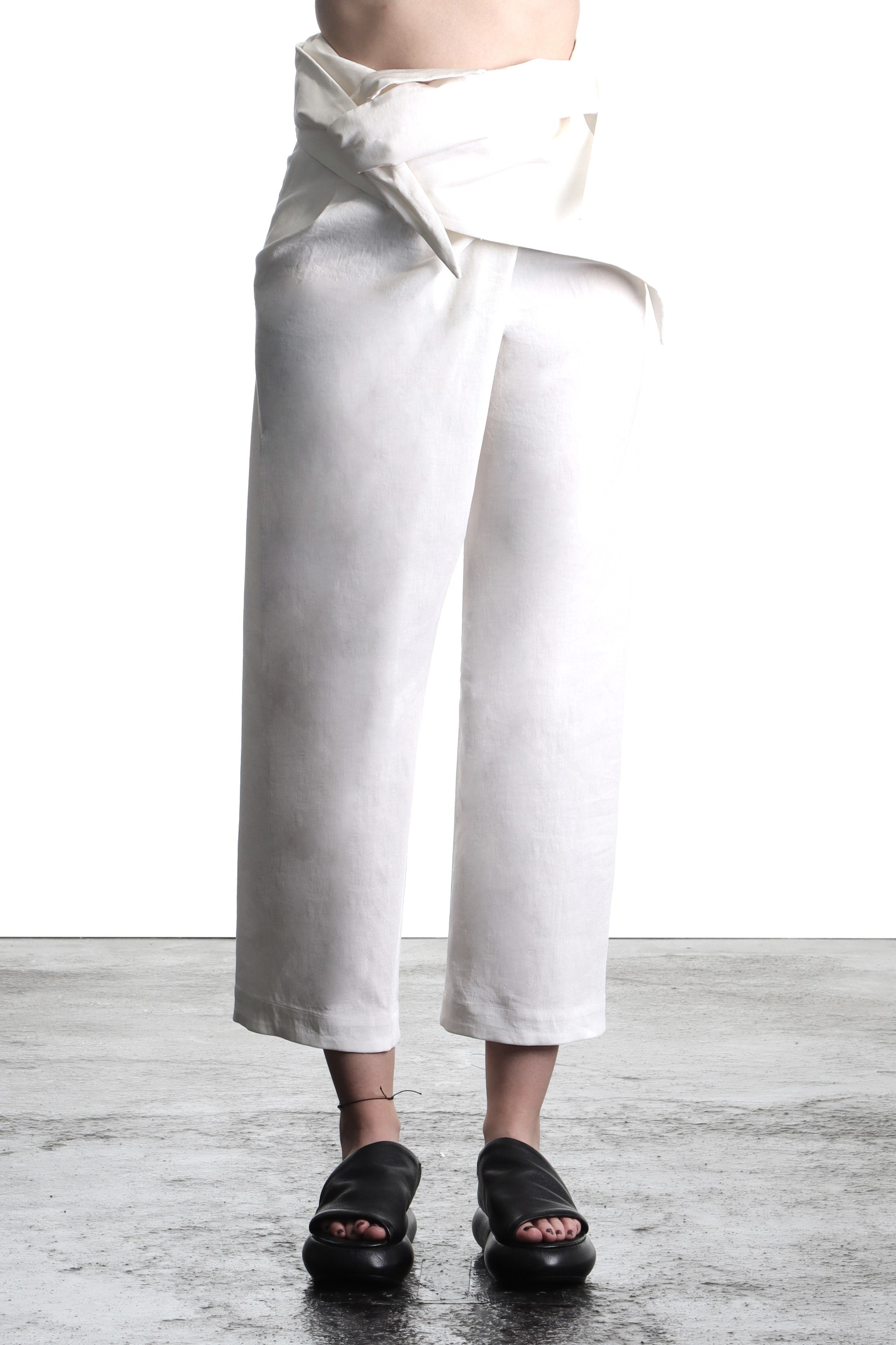 Experience ultimate comfort and style with the Issey Miyake women's 7/8 trousers with a high waist. The comfortable tie belt and wide leg ensure a perfect fit and an elegant look. Enjoy timeless elegance with these extravagant trousers.