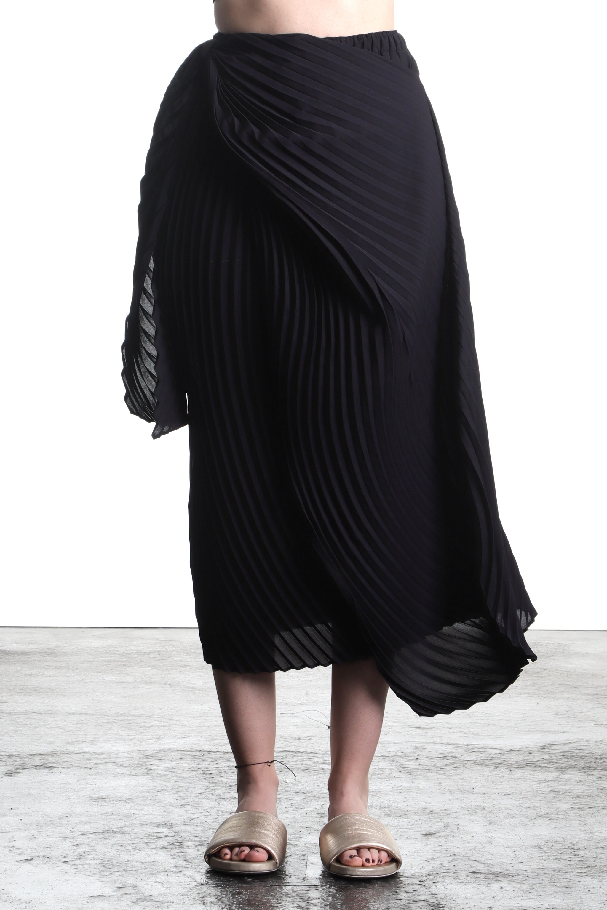 Issey Miyake women's avant-garde asymmetric midi skirt black