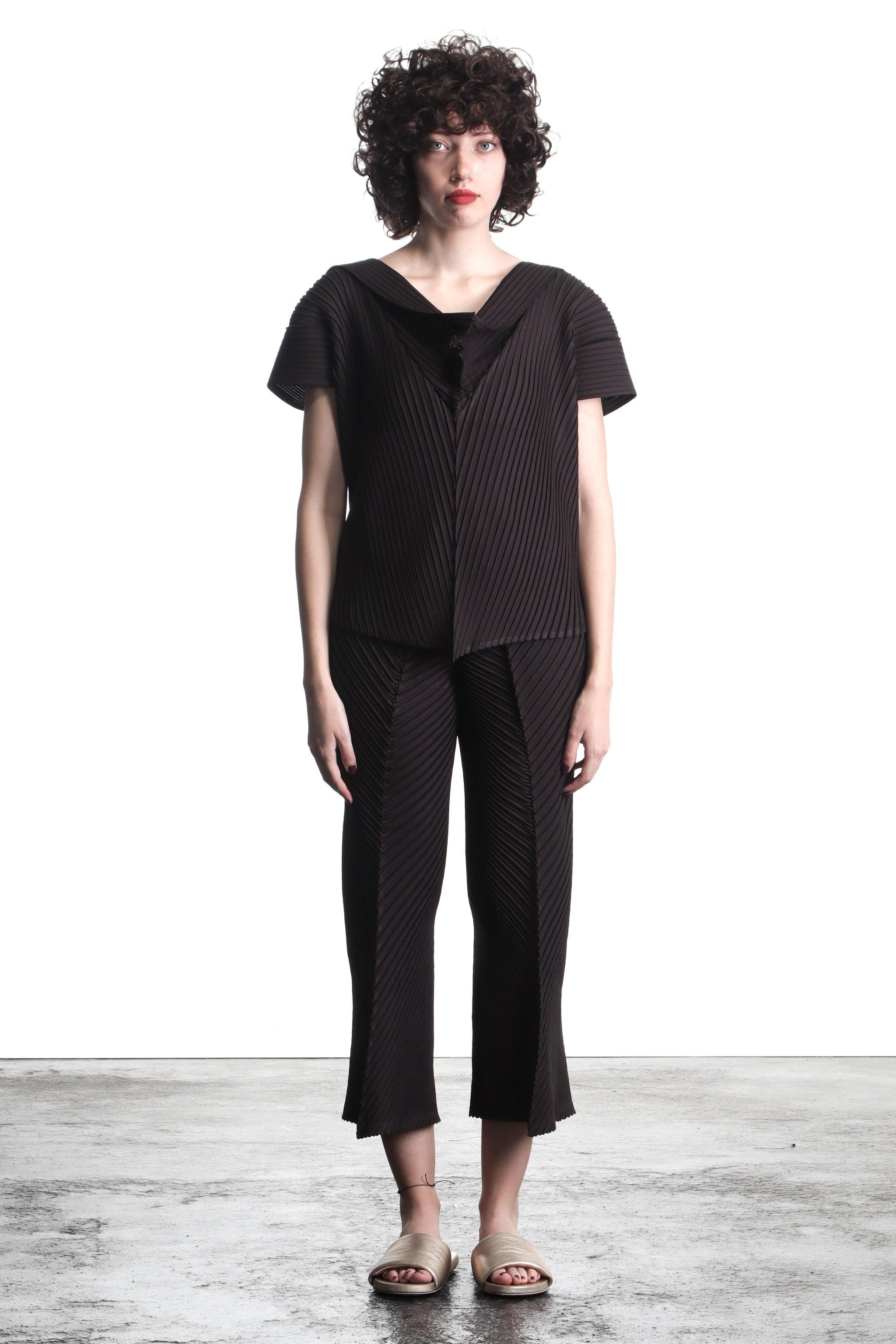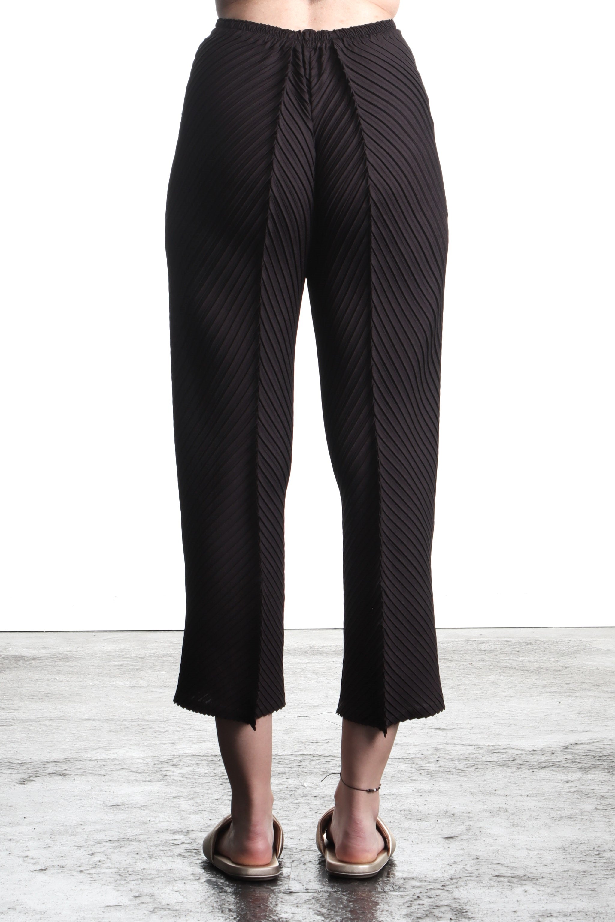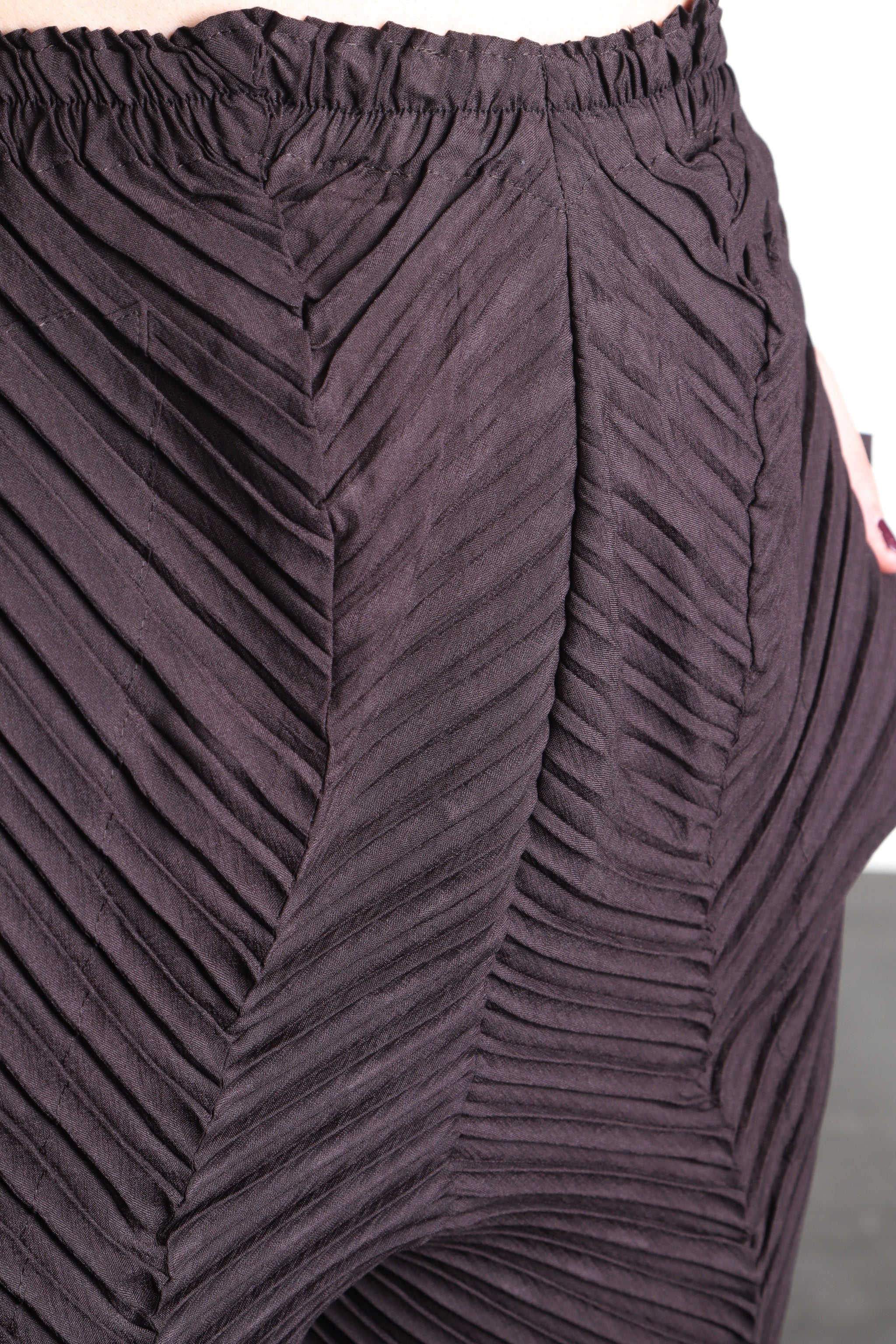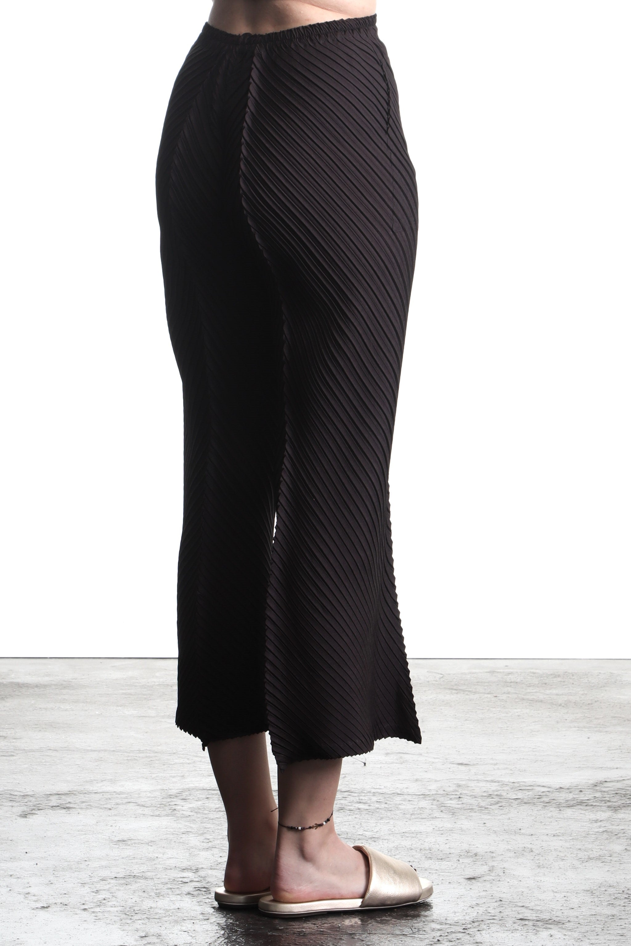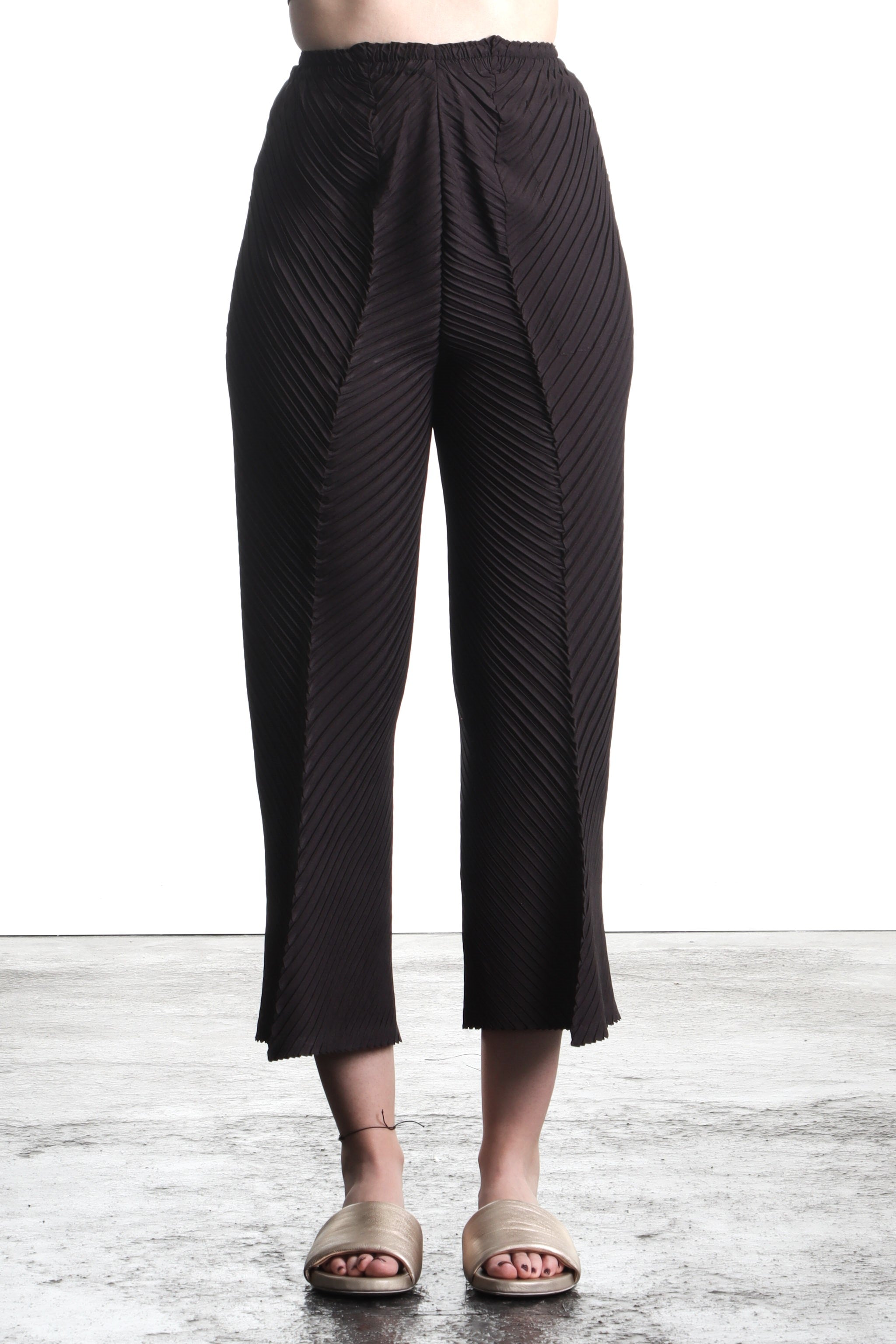 The Issey Miyake women's pleated 7/8 trousers in black are both stylish and functional. The flared cut creates a modern look and the elasticated waistband offers a comfortable fit. A perfect choice for women who value stylish clothing.