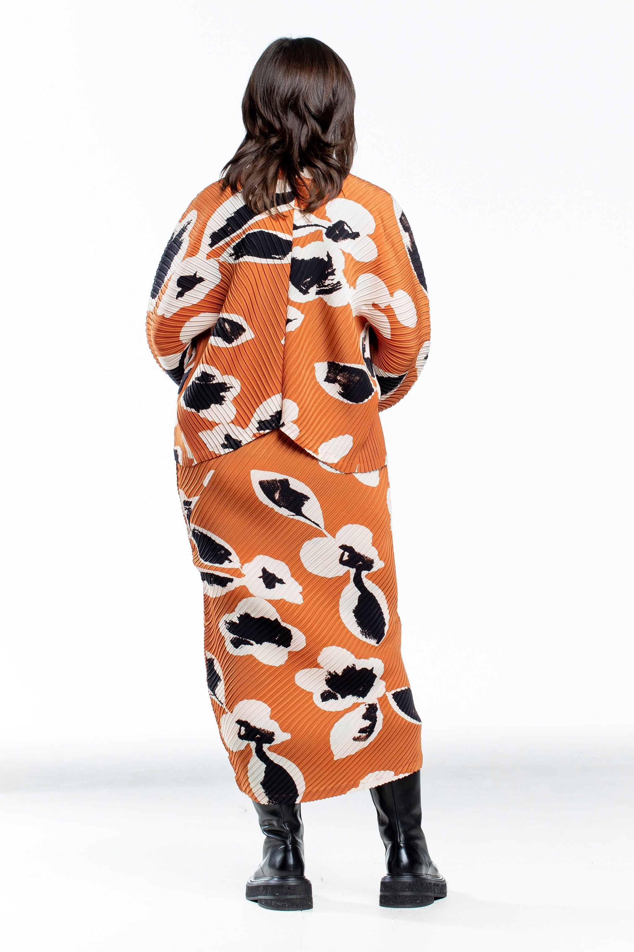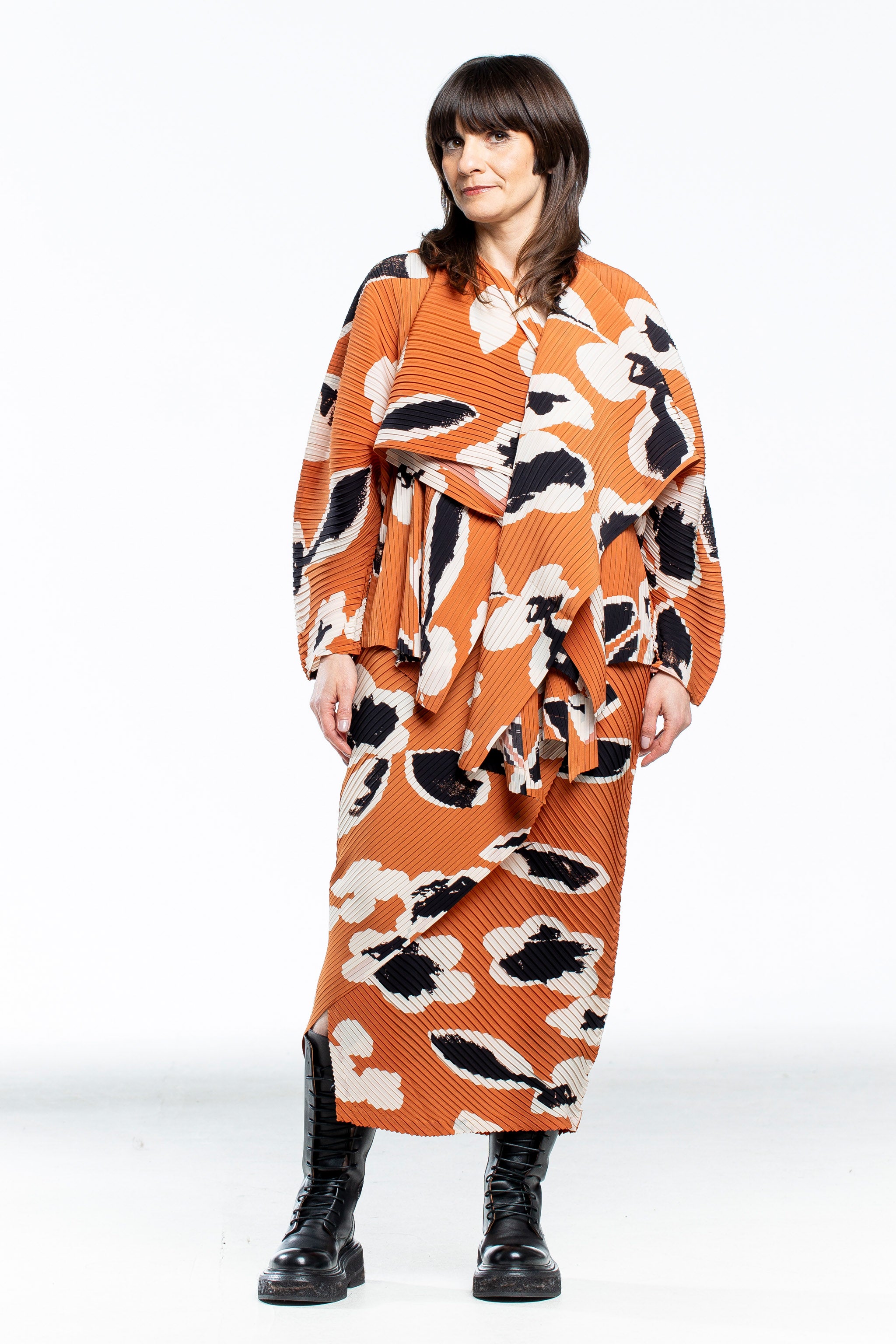 Issey Miyake pleated avant-garde women's jacket VIGOR PLEATS orange multicolor