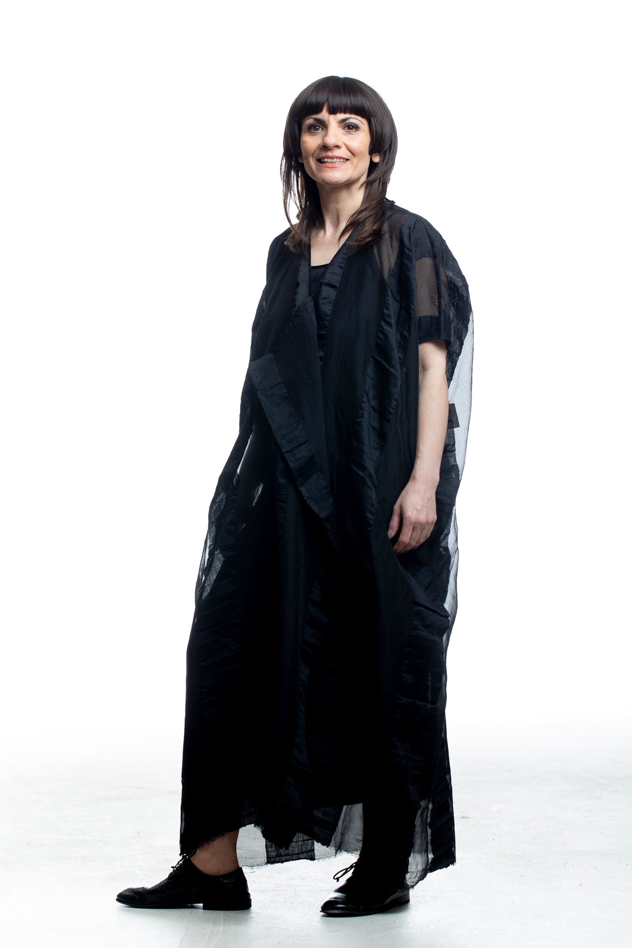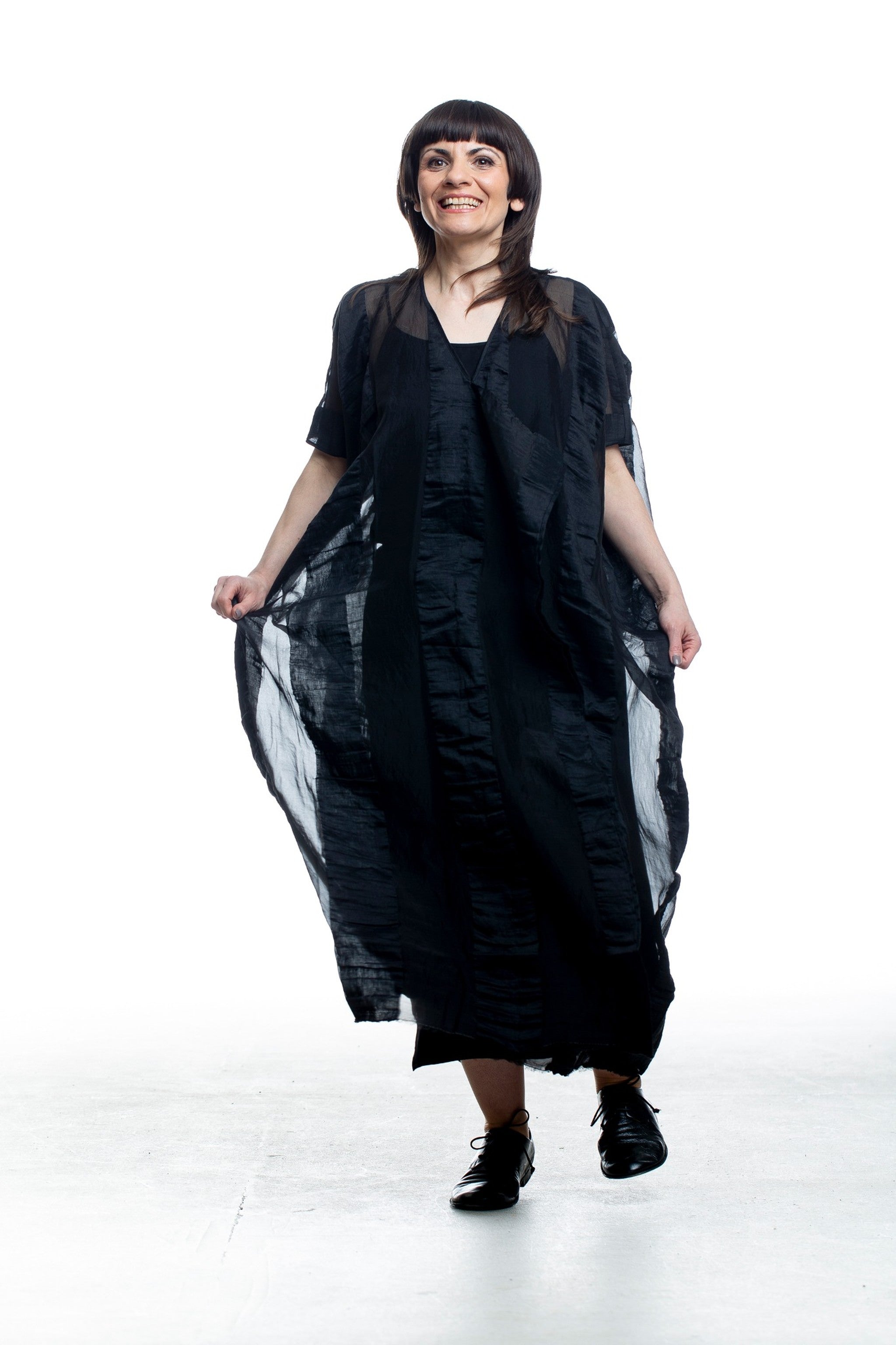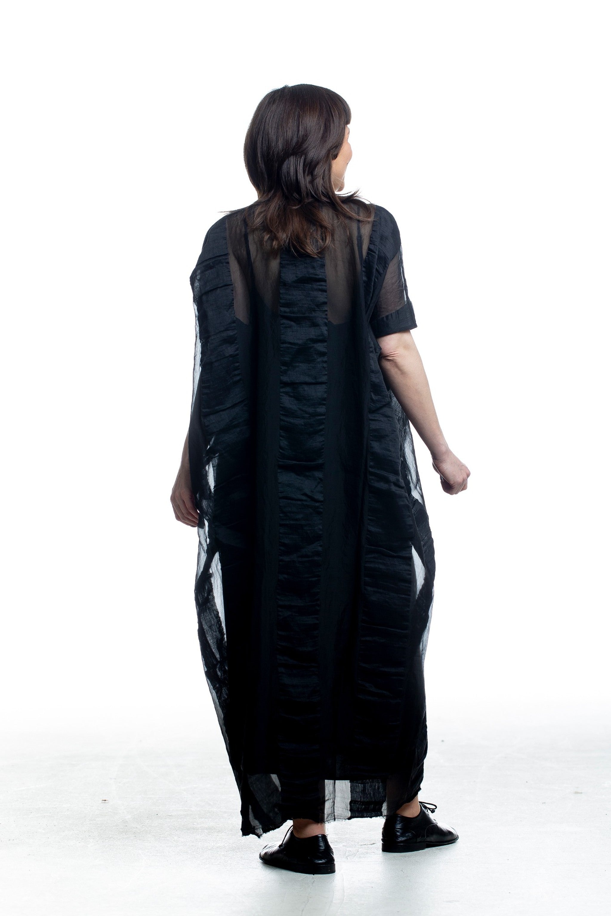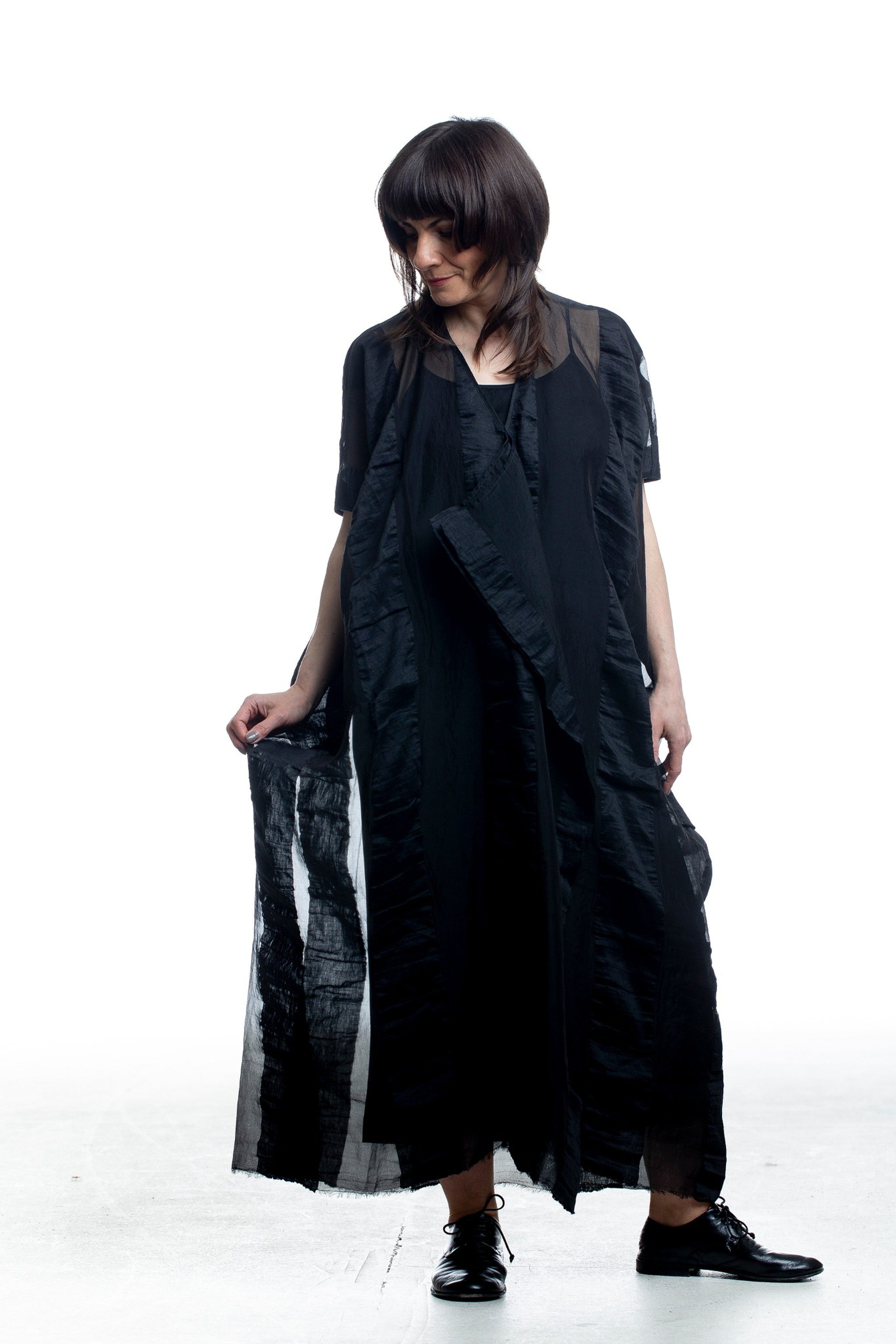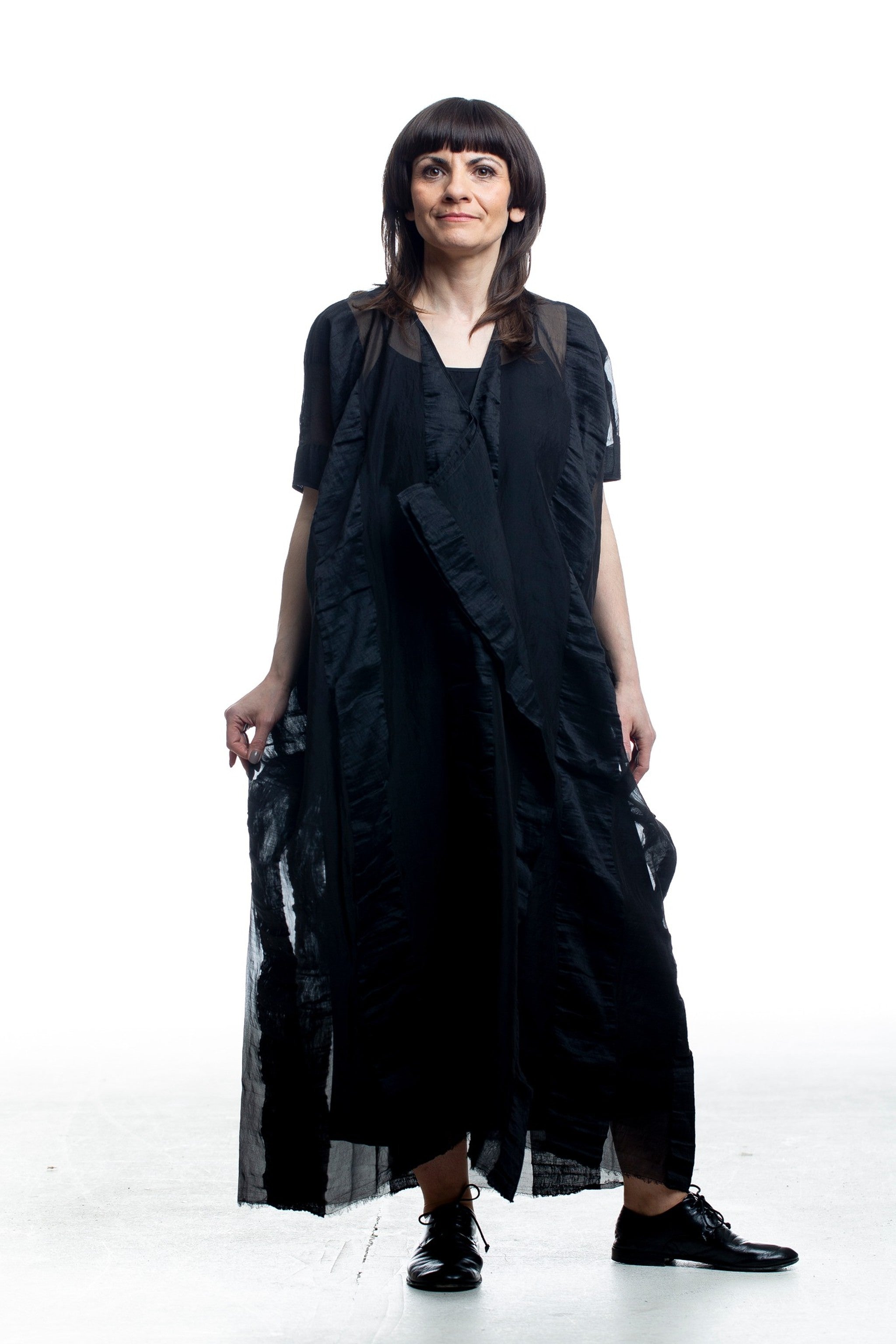 This extraordinary maxi dress by Uma Wang combines Japanese-inspired fabric art with a modern avant-garde silhouette. The flowing silk and linen blend gives the dress a luxurious feel and an almost floating drape. The structured transparency creates depth and lightness - perfect for layering looks or as an expressive one-off piece.