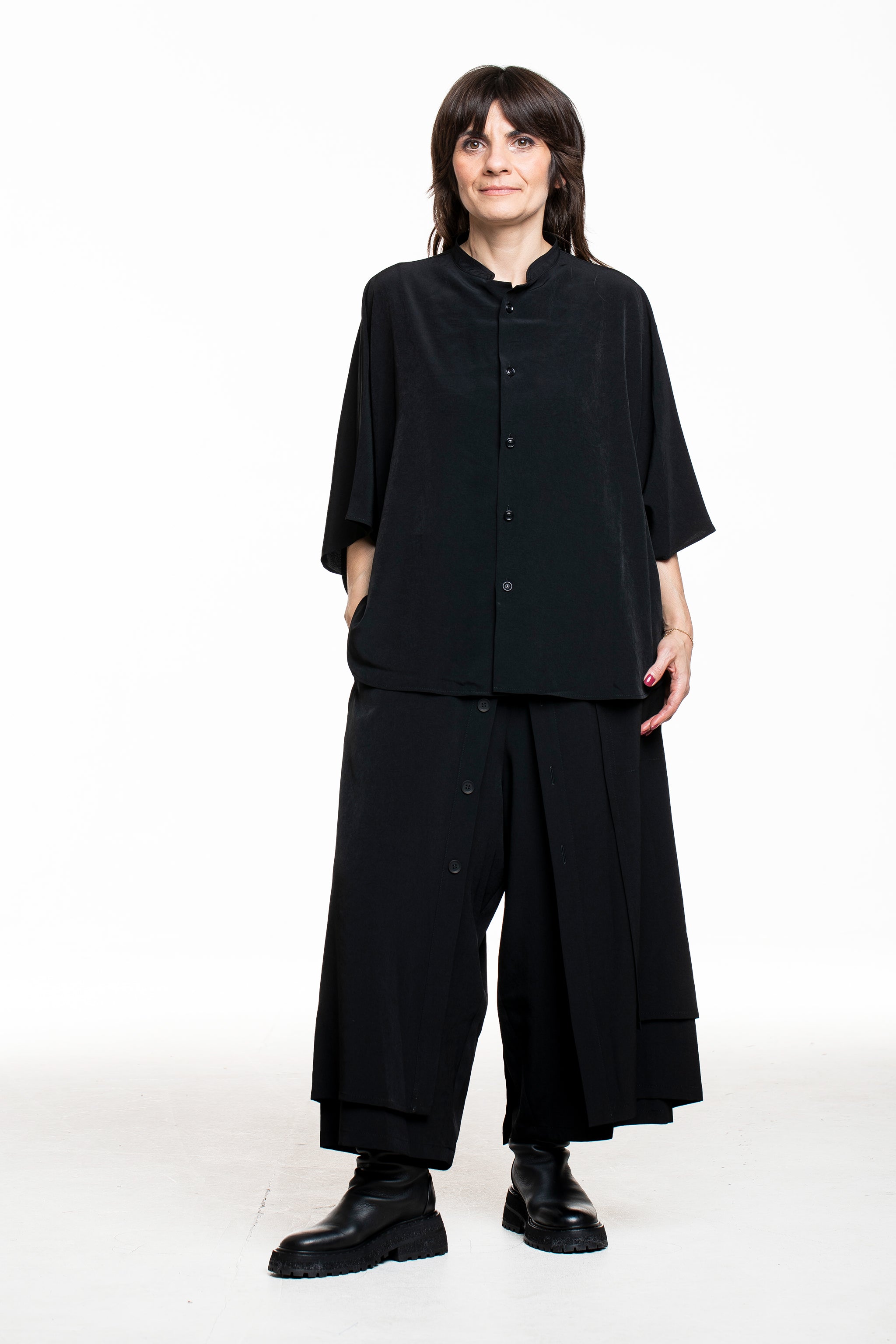 Y's Yohji Yamamoto ladies shirt with stand-up collar black