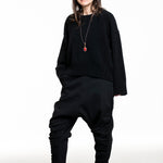 Dieser Oversized-Yak-Pullover von Isabel Benenato verkörpert entspannte, urbane Eleganz. Der kastige Schnitt mit überschnittenen Schultern fällt lässig über den Körper und schafft eine moderne, leicht androgyn wirkende Silhouette. Weicher Yak-Strick in tiefem Schwarz sorgt für luxuriöse Wärme bei federleichtem Tragegefühl.