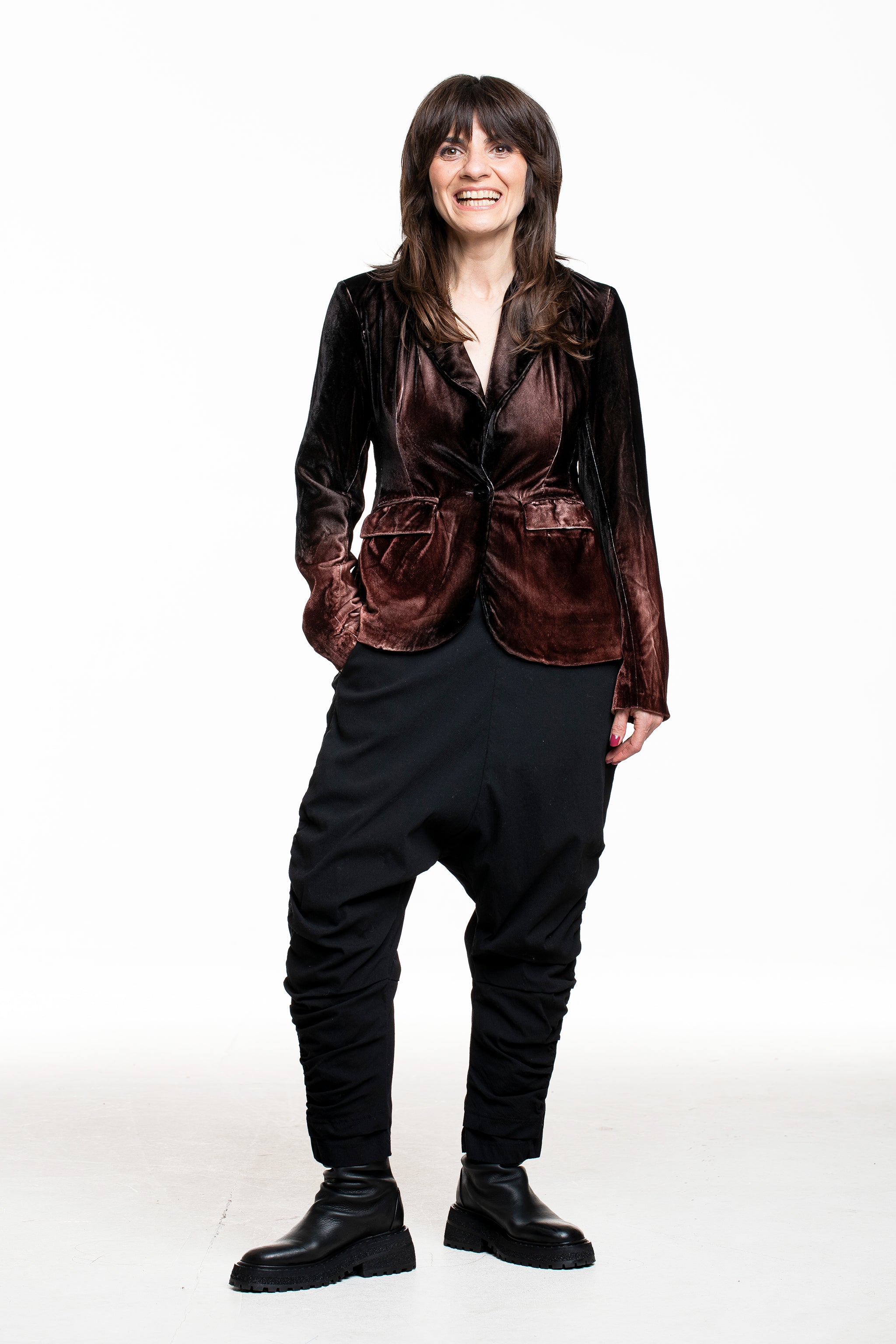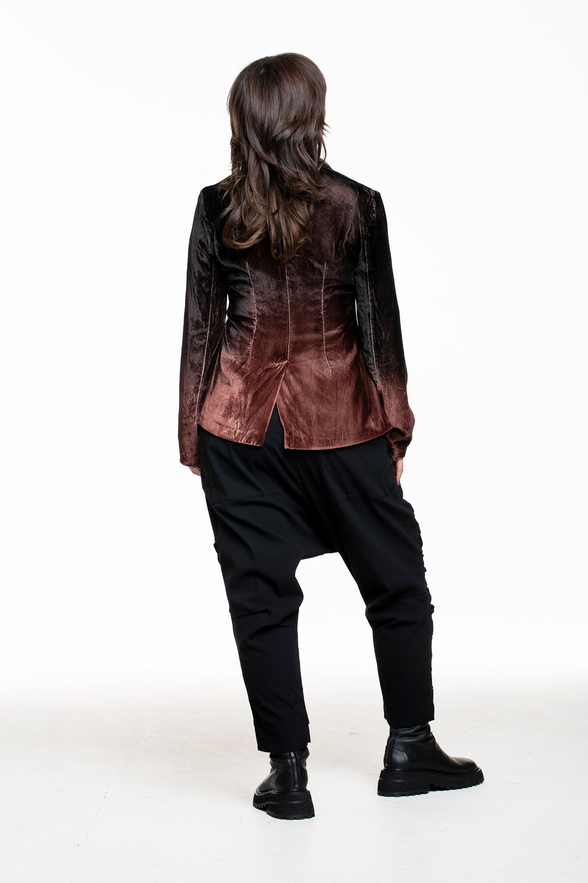 Avant Toi zeigt hier eine luxuriöse Stretchsamt‑Jacke in warmem Kupferton mit weichem, fließendem Fall und feinem Farbverlauf. Der figurfreundliche Schnitt bringt Komfort und Glanz in jeden Look – von Denim bis Abendoutfit. Ein Must-Have der Extraklasse.