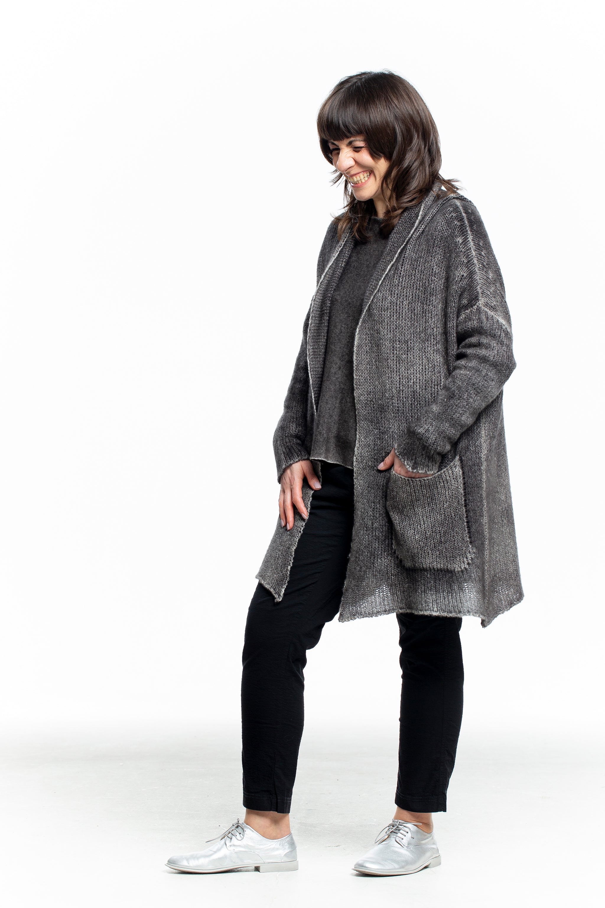 Die lange Passform und die aufgesetzten Taschen machen sie nicht nur bequem, sondern auch praktisch. Verleihen Sie Ihrem Outfit mit dieser Strickjacke einen klassischen und doch modernen Look.