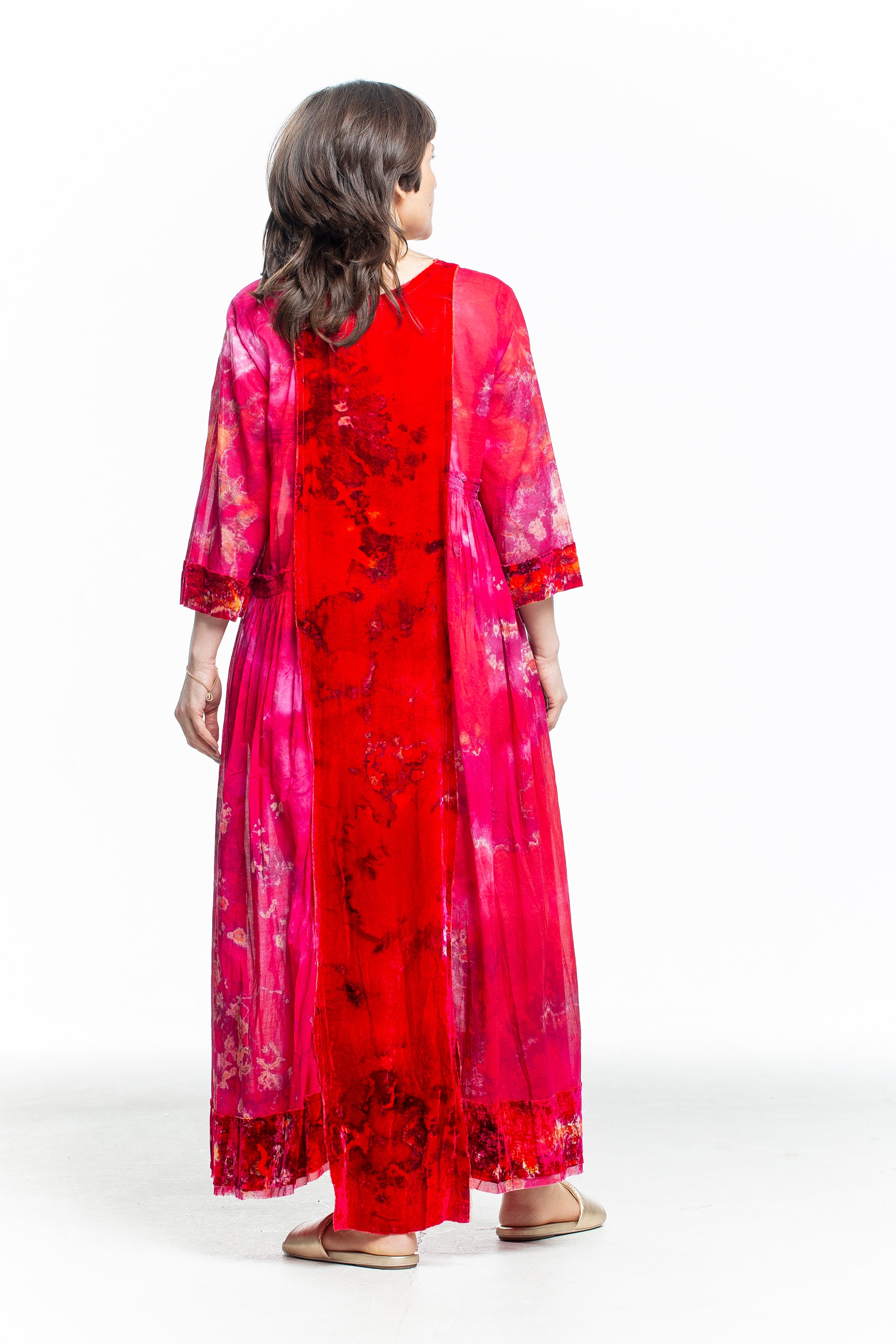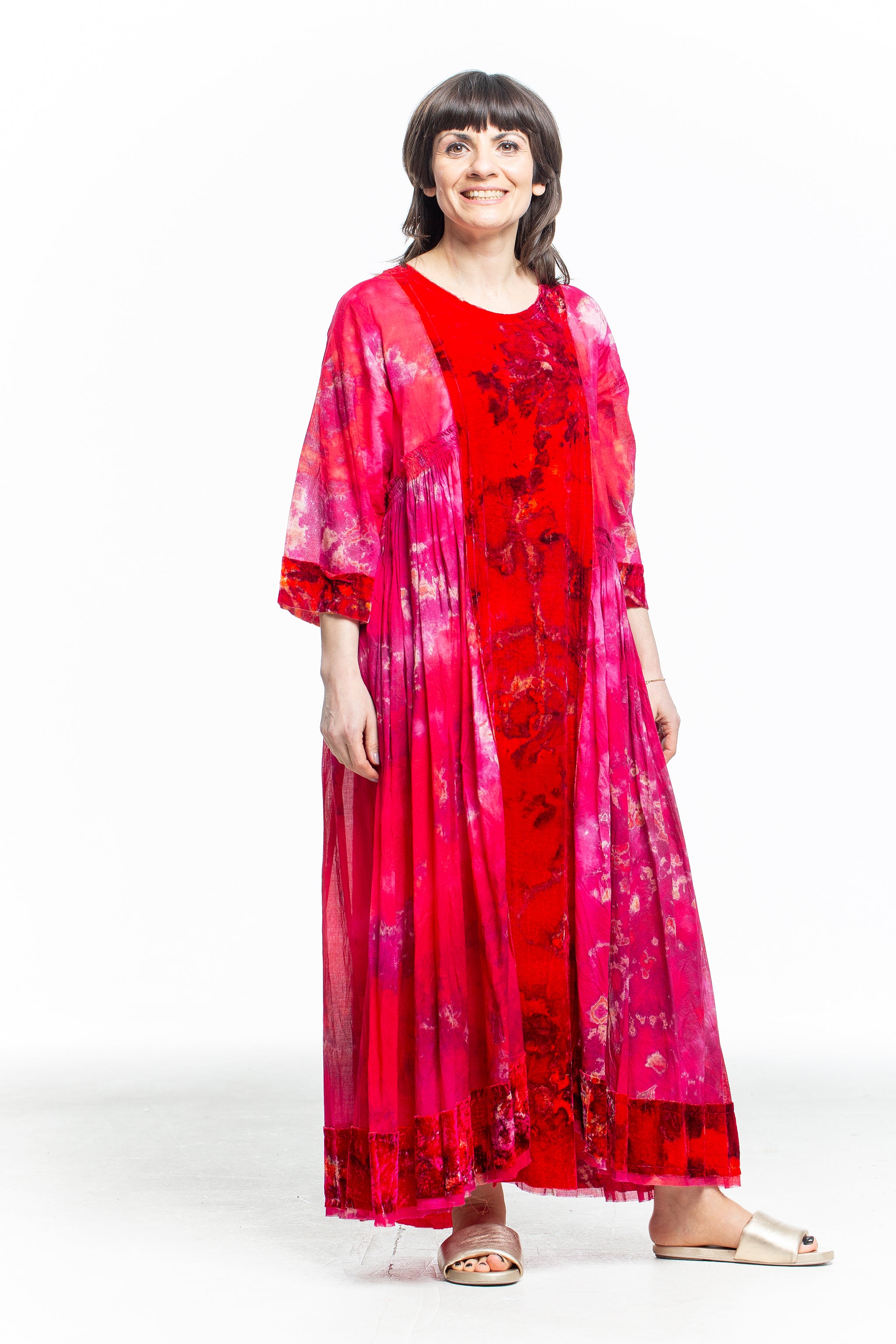 Gilda Midani Damen Maxikleid BLOOM DRESS Print rot pink