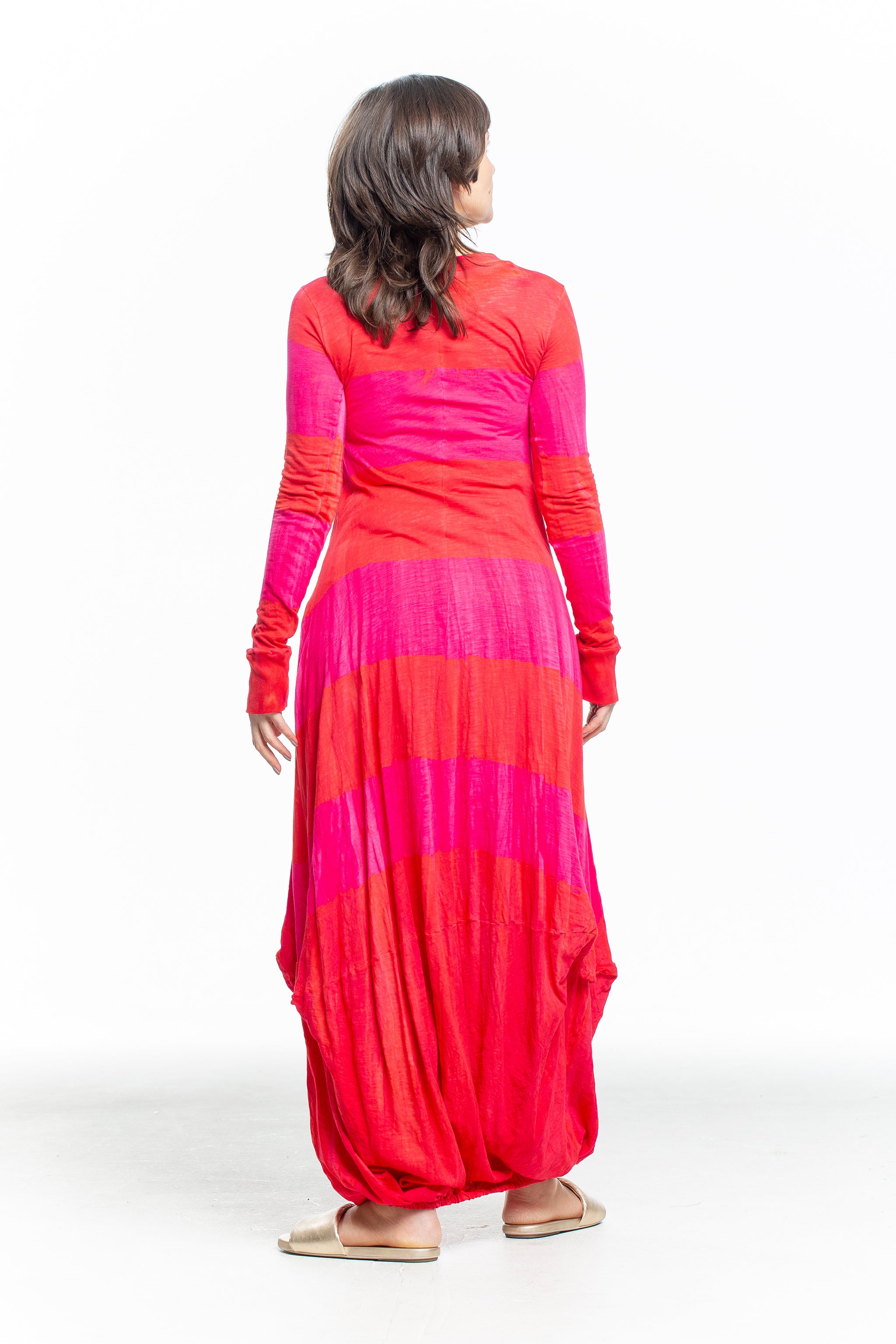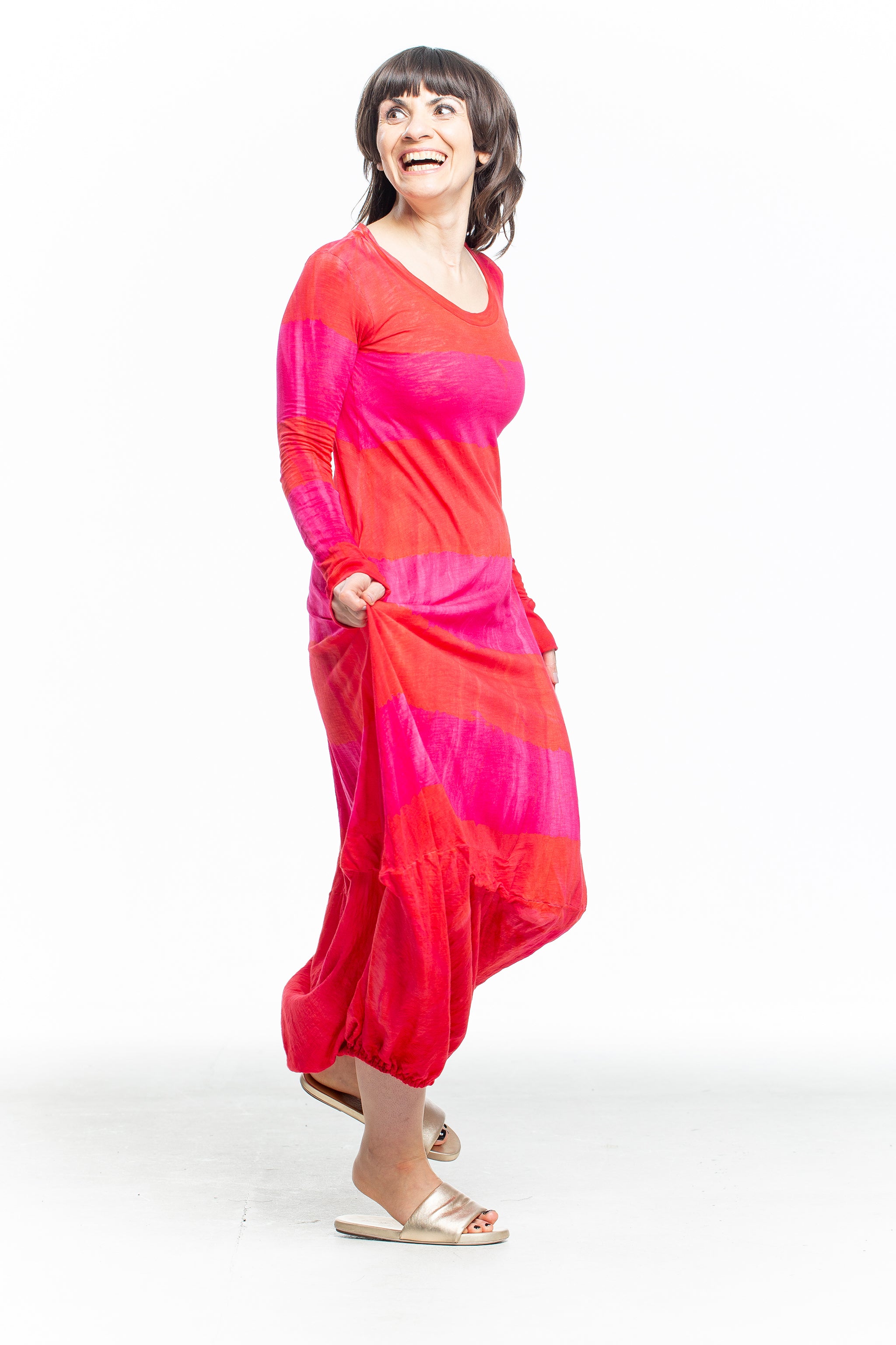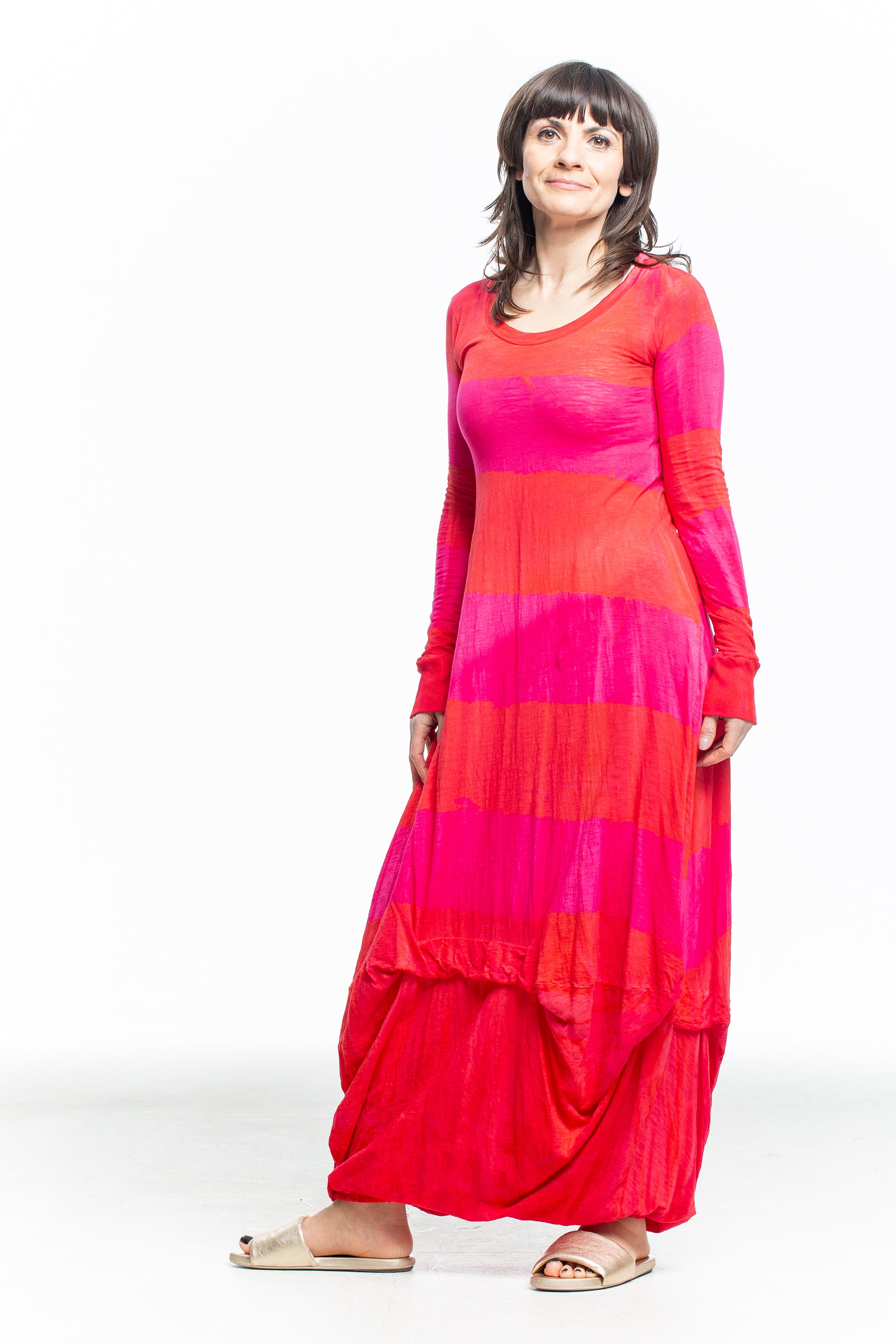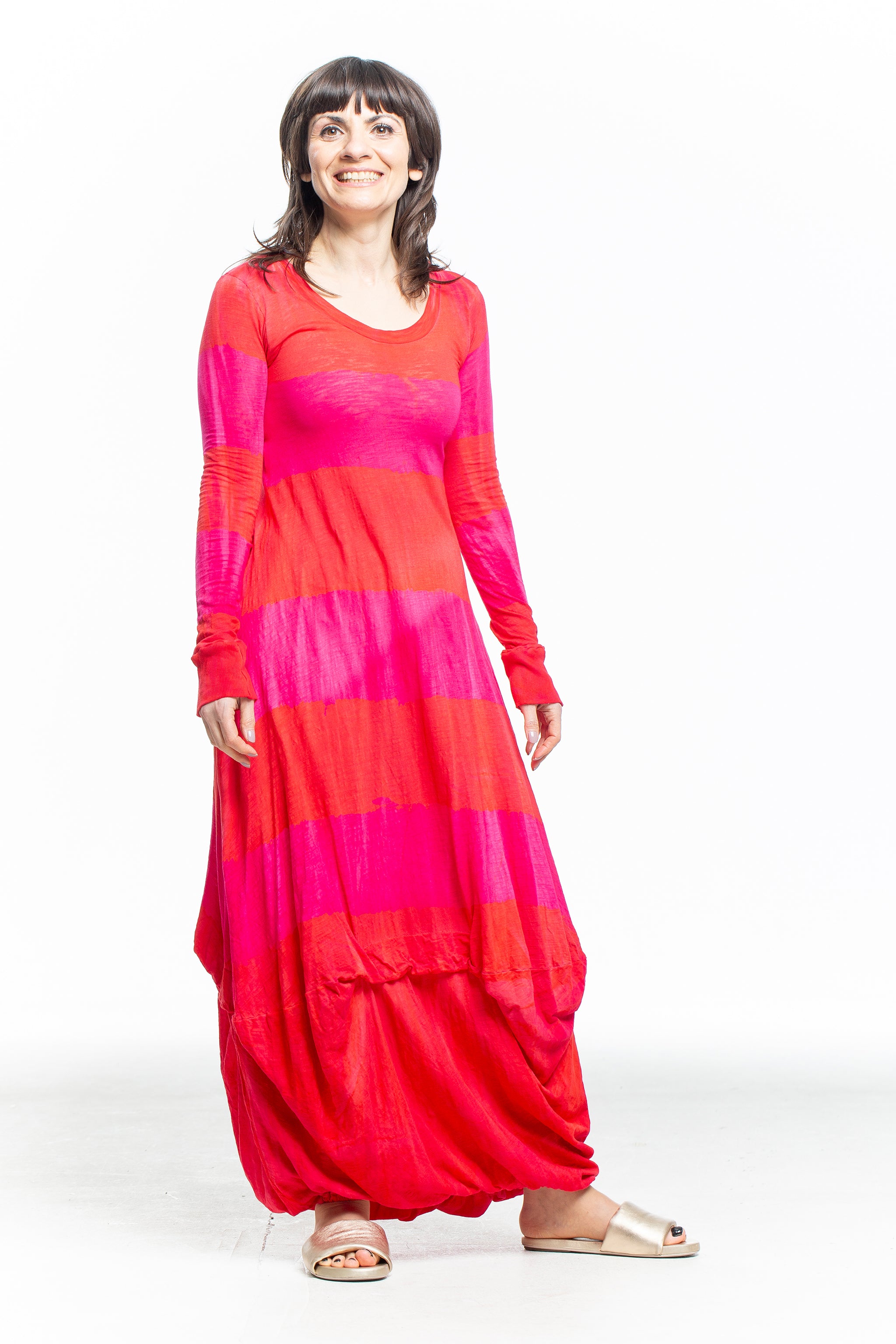Gilda Midani Damen Maxikleid rot Streifen pink
