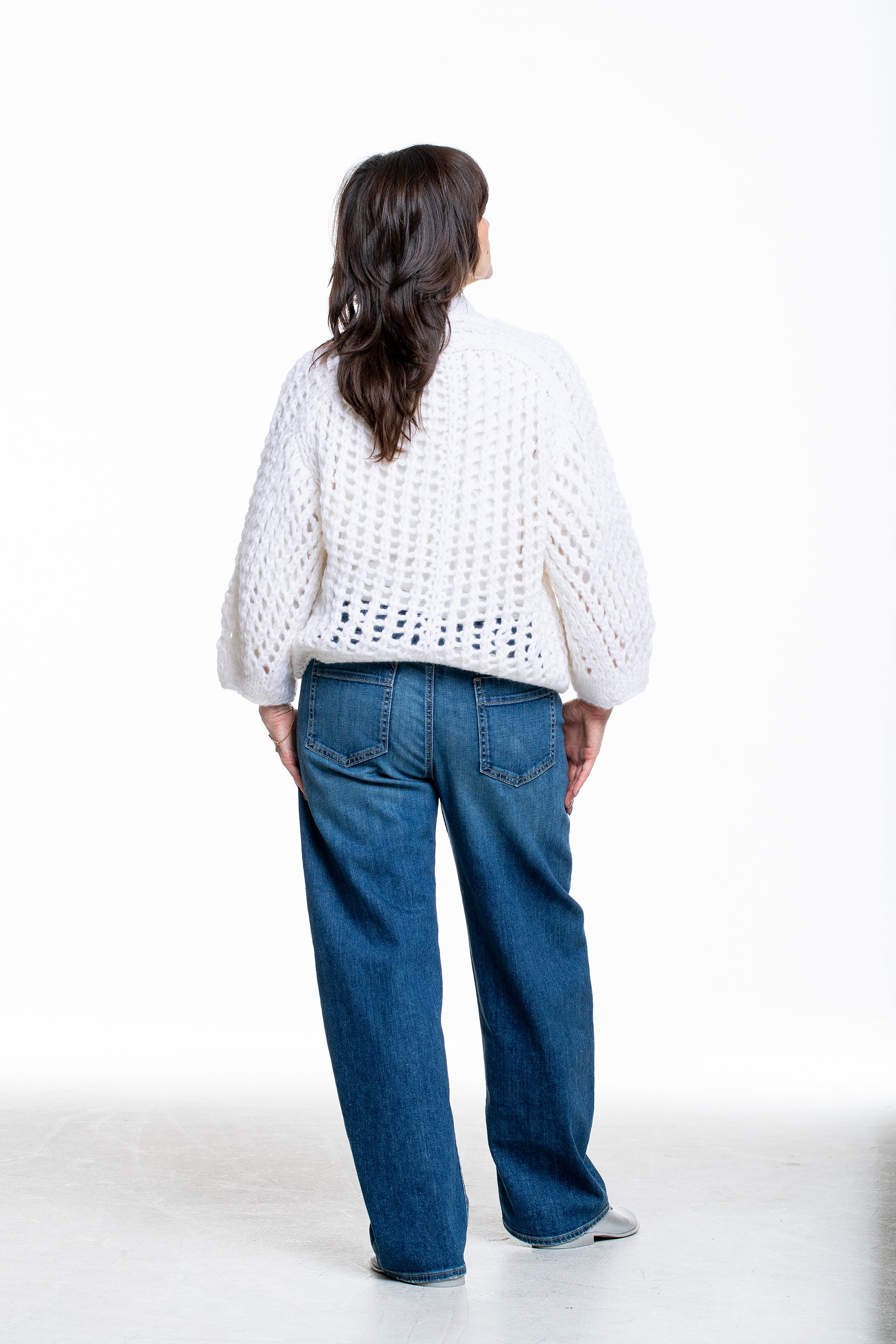Der locker geschnittene Handstrick Cardigan überzeugt mit offener Lochstruktur und einer charakteristischen Textur.