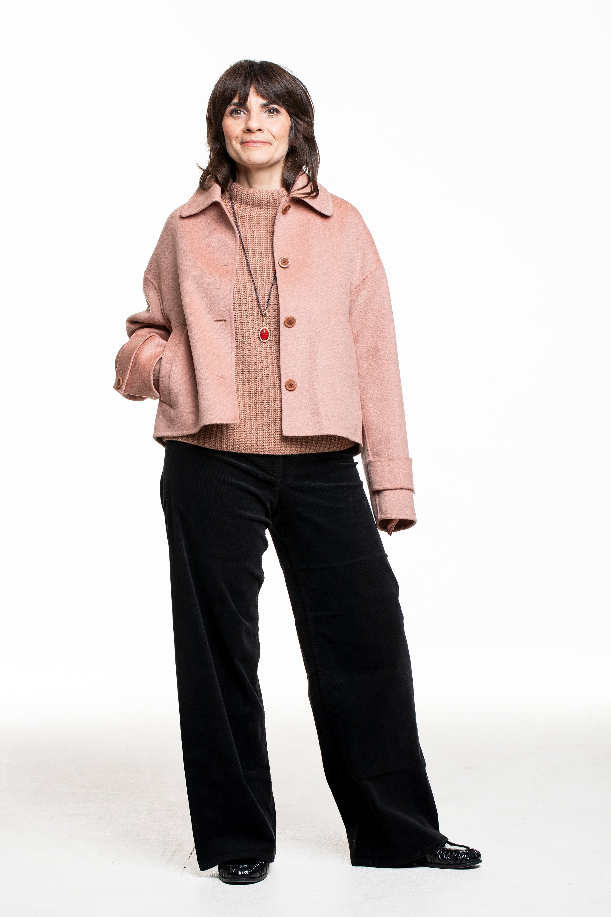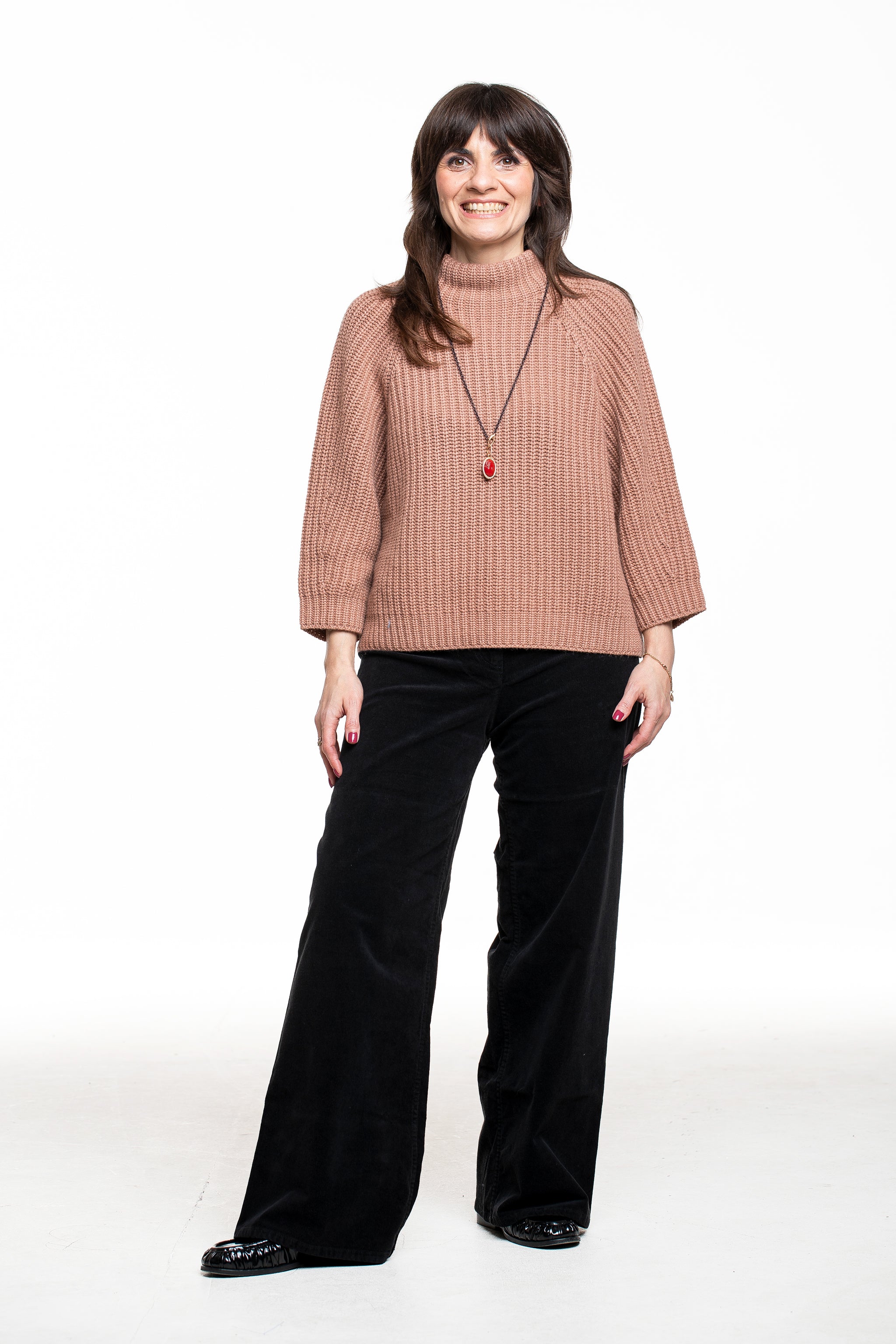 Der Rollkragenpullover FALLOU von Iris von Arnim ist der Inbegriff entspannten Kaschmir‑Luxus. Die leicht verkürzte, boxy geschnittene Form fällt locker über Hüfte und Bund, der hohe Rollkragen und die 3/4‑Ärmel umspielen den Körper ohne aufzutragen. Der warme Rosenholz‑Ton bringt Farbe ins Outfit und lässt sich wunderbar zu Schwarz, Denim oder Winterweiß kombinieren – ein kuscheliger Allrounder für jeden Tag.