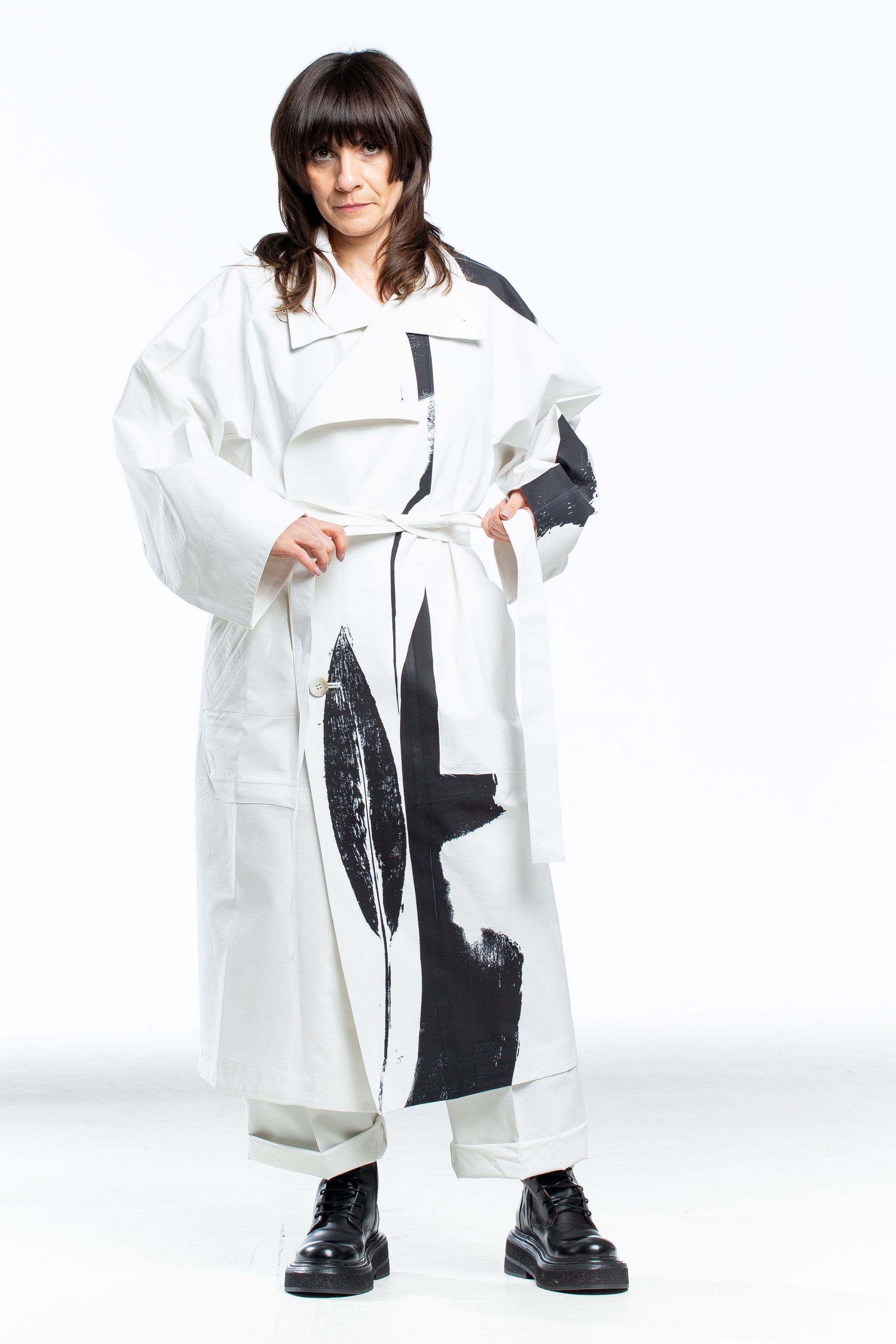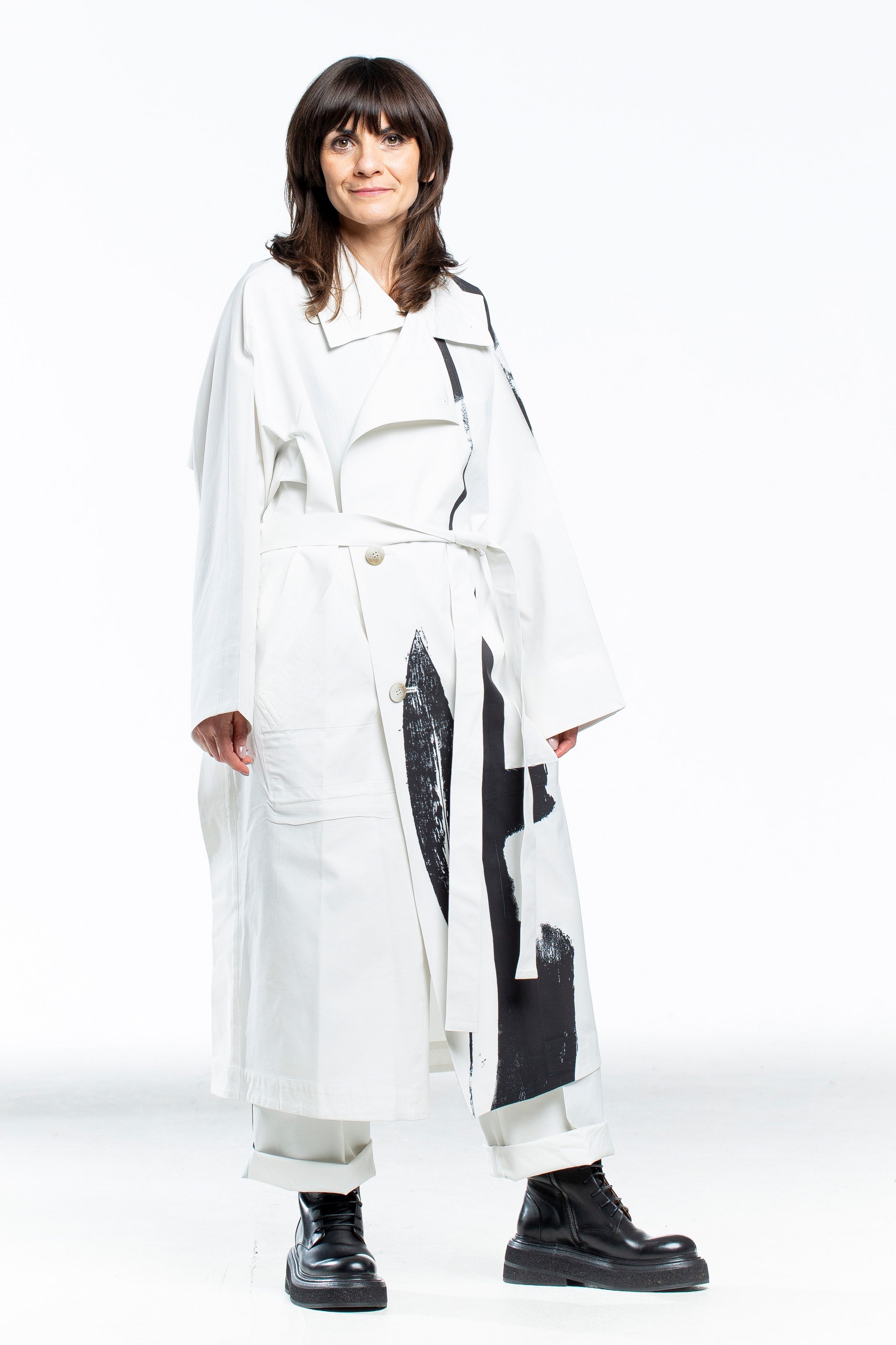 Erleben Sie Stil und Komfort mit dem Issey Miyake Avantgarde Trenchcoat. Das atemberaubende weiß-schwarze Design mit Print verleiht Ihnen lässige Eleganz. Fühlen Sie sich selbstbewusst und stylish in diesem Mantel, der Ihre Persönlichkeit zum Ausdruck bringt!
