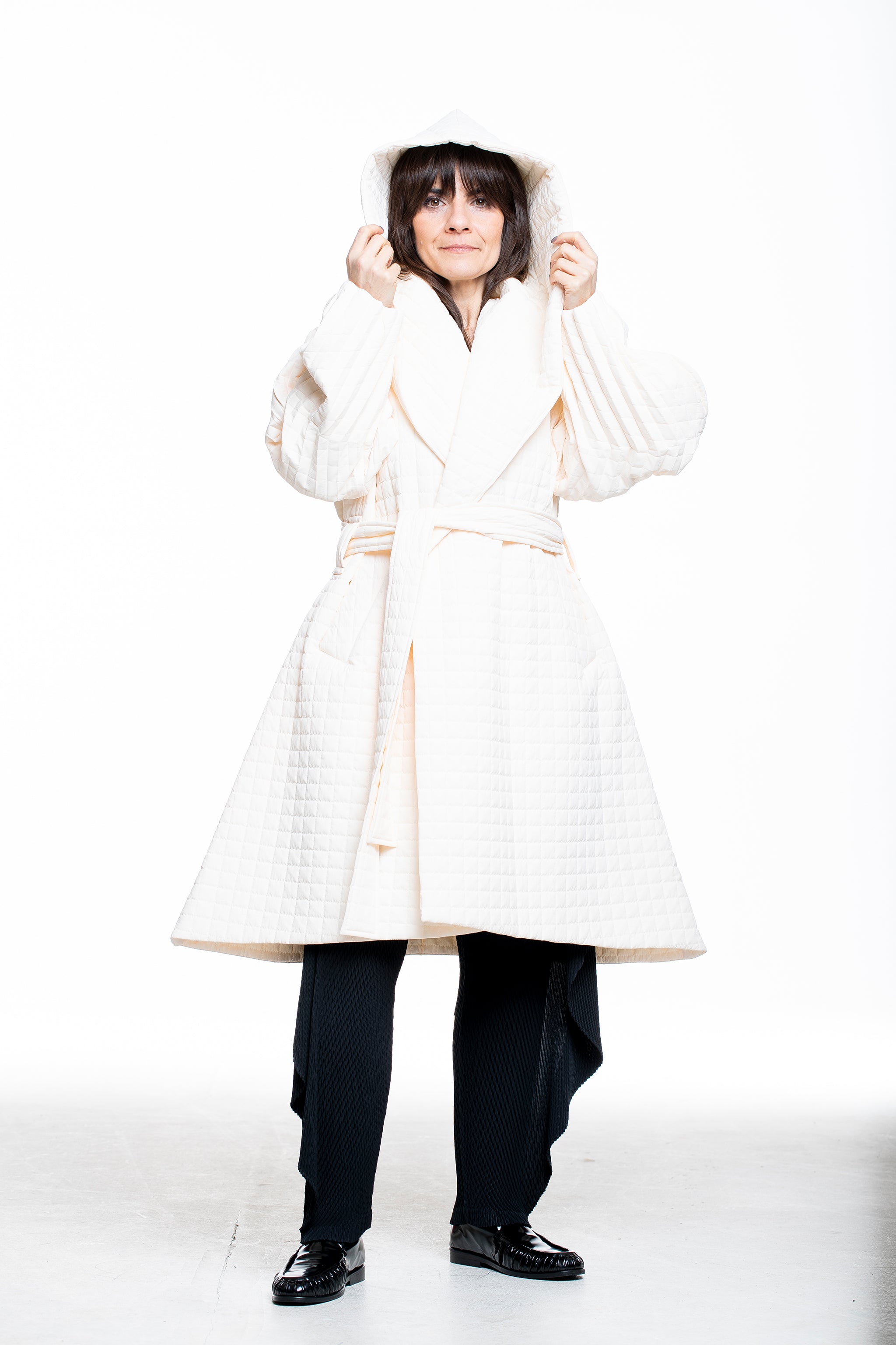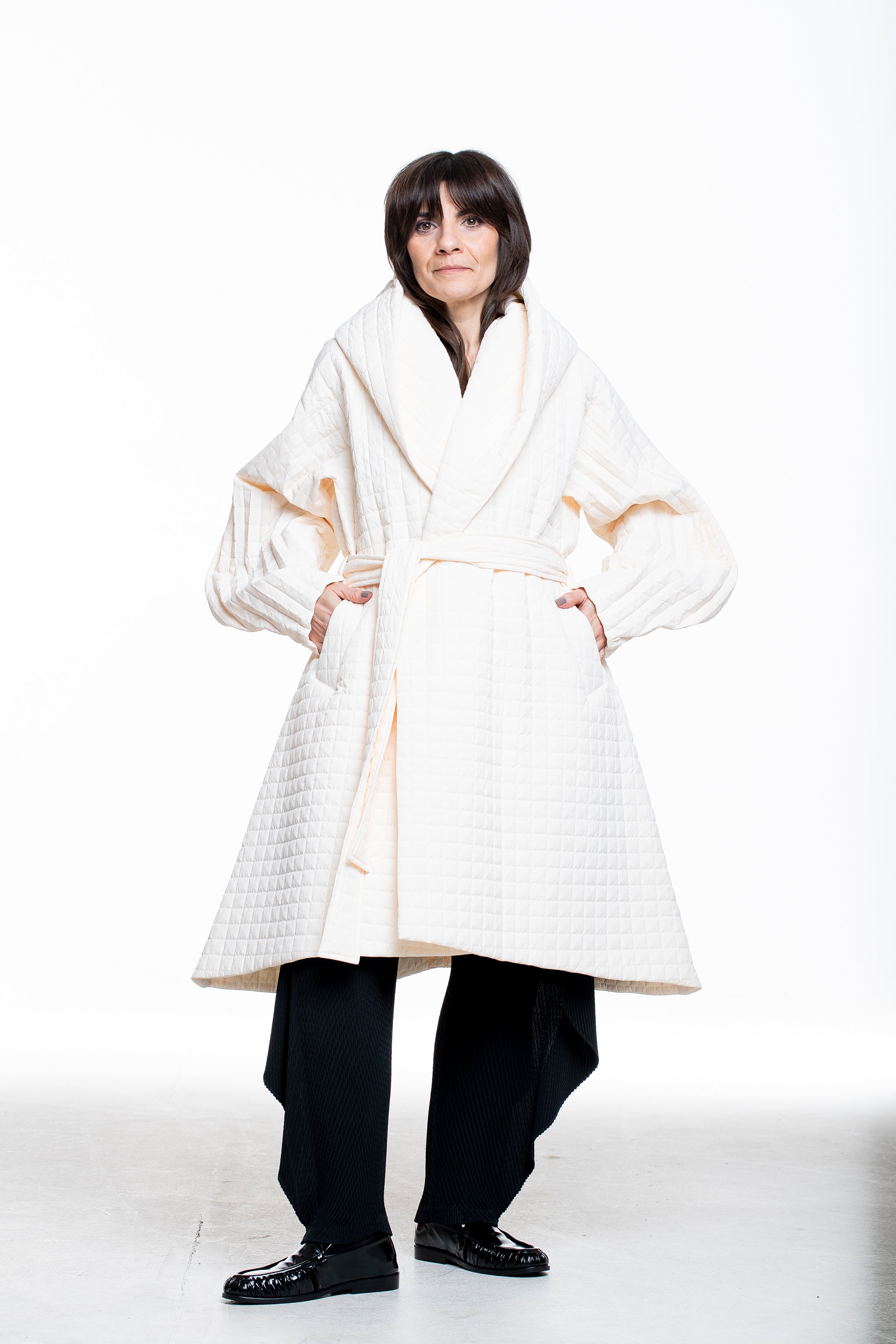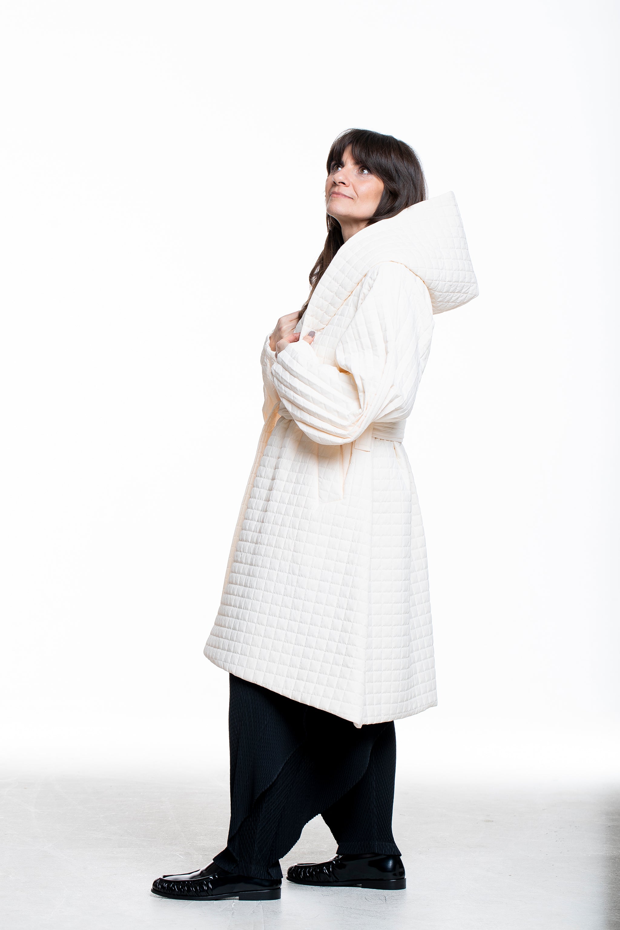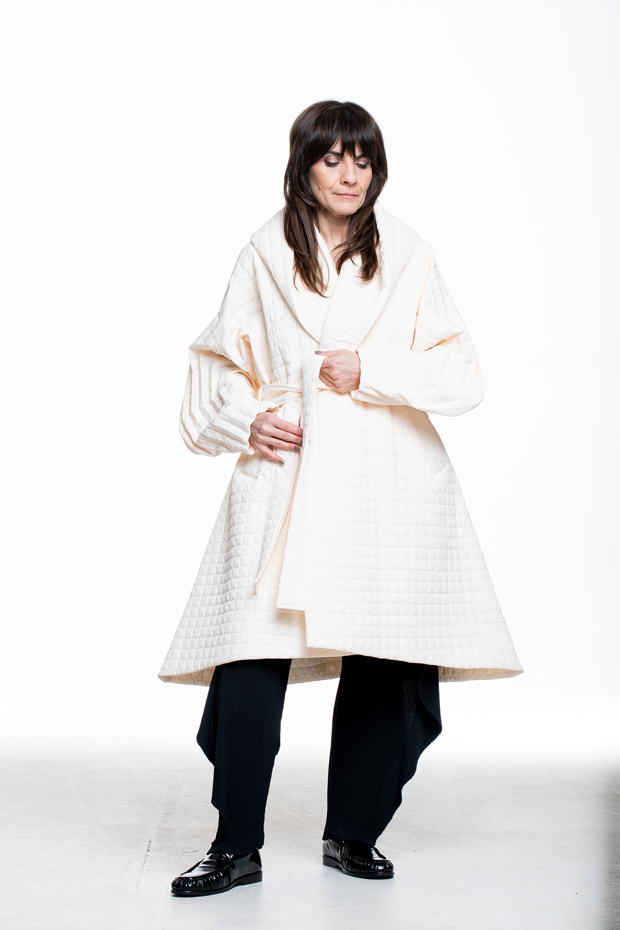 Der PLEATED GRID Mantel von Issey Miyake verbindet skulpturale Eleganz mit einem modernen, gesteppten Grid-Design. Die Wickel-Silhouette lässt sich mit dem Bindegürtel flexibel stylen – offen wie ein lässiger Overcoat oder tailliert für eine klare Linie. Kapuze und Volumen machen ihn zu einem besonderen Statement-Piece für kühle Tage.