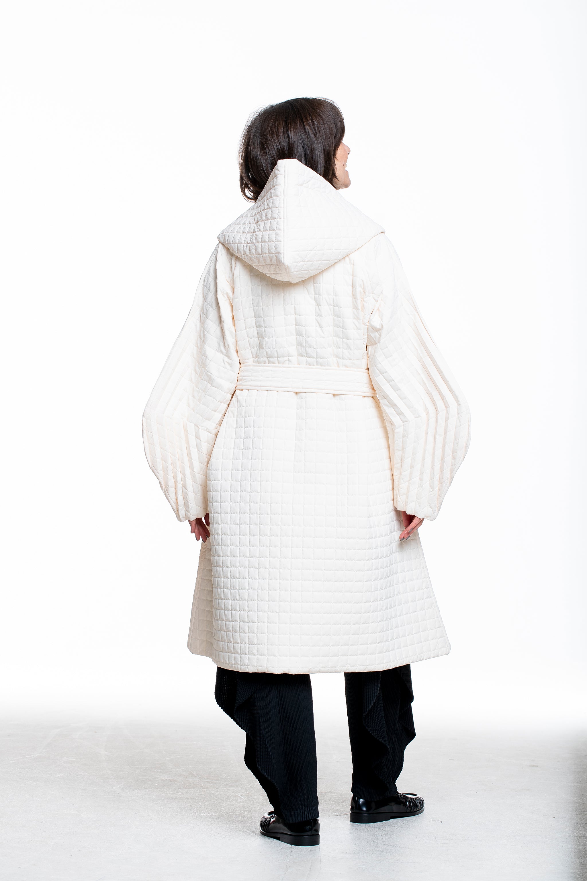 Issey Miyake Damen Mantel PLEATED GRID off-white