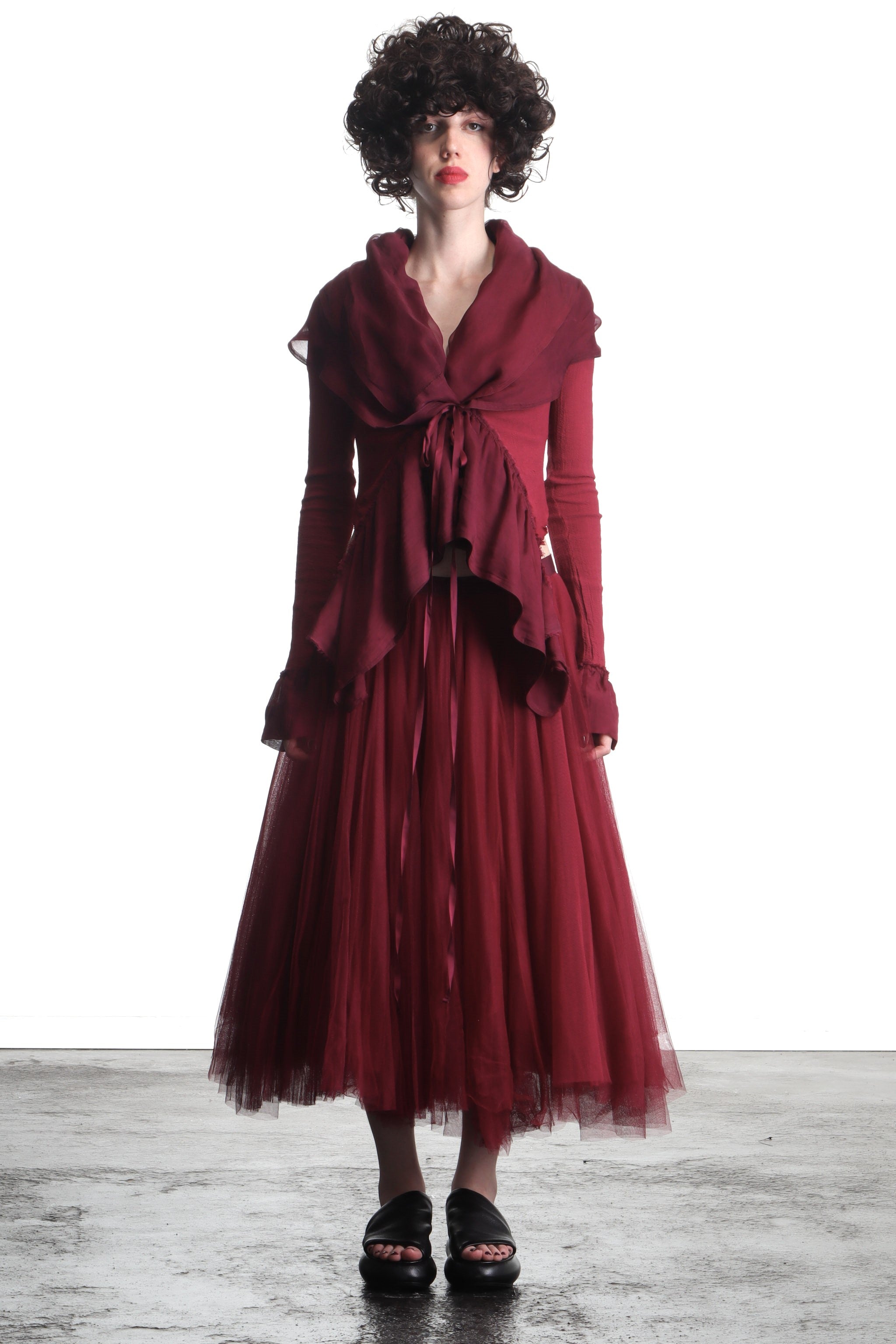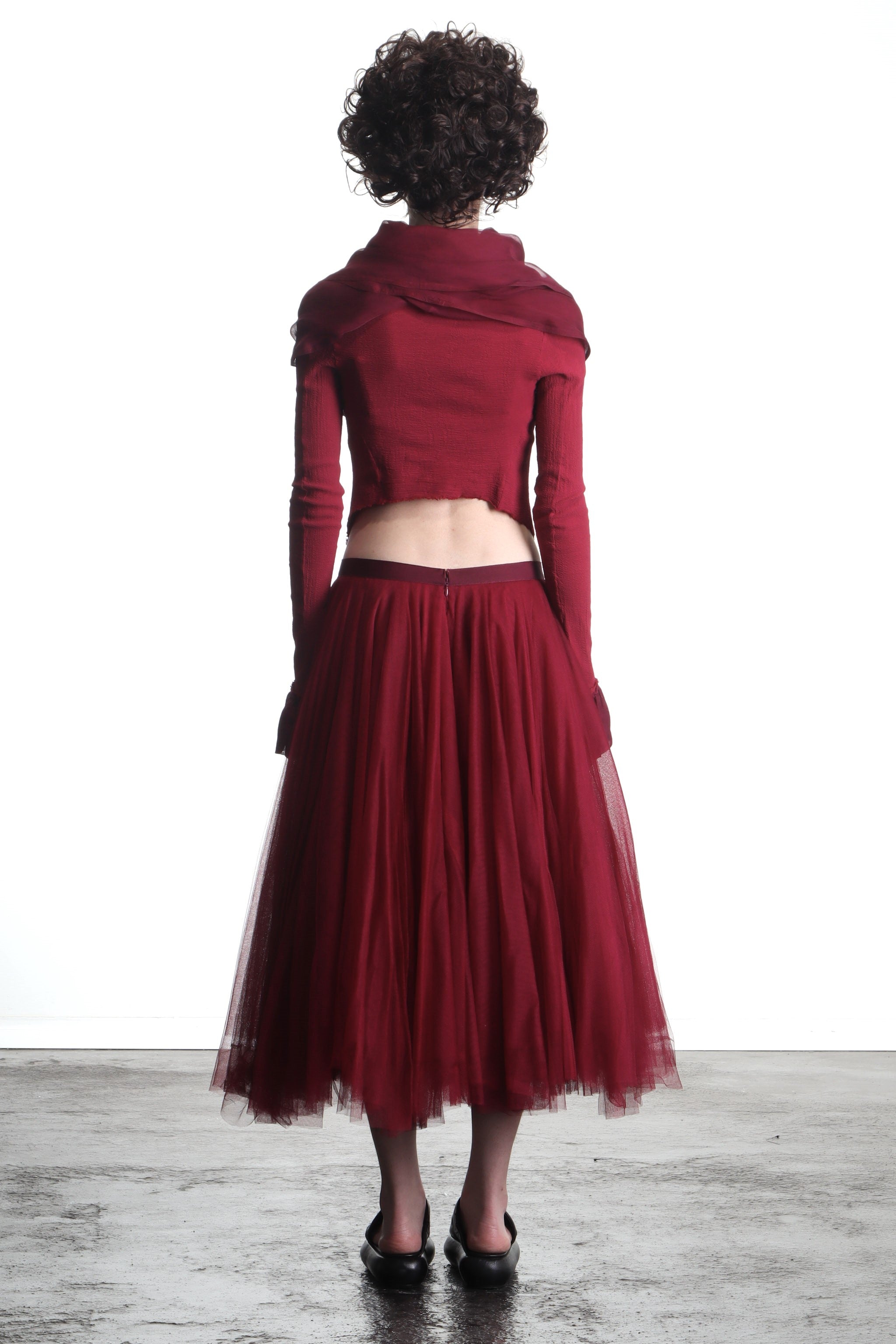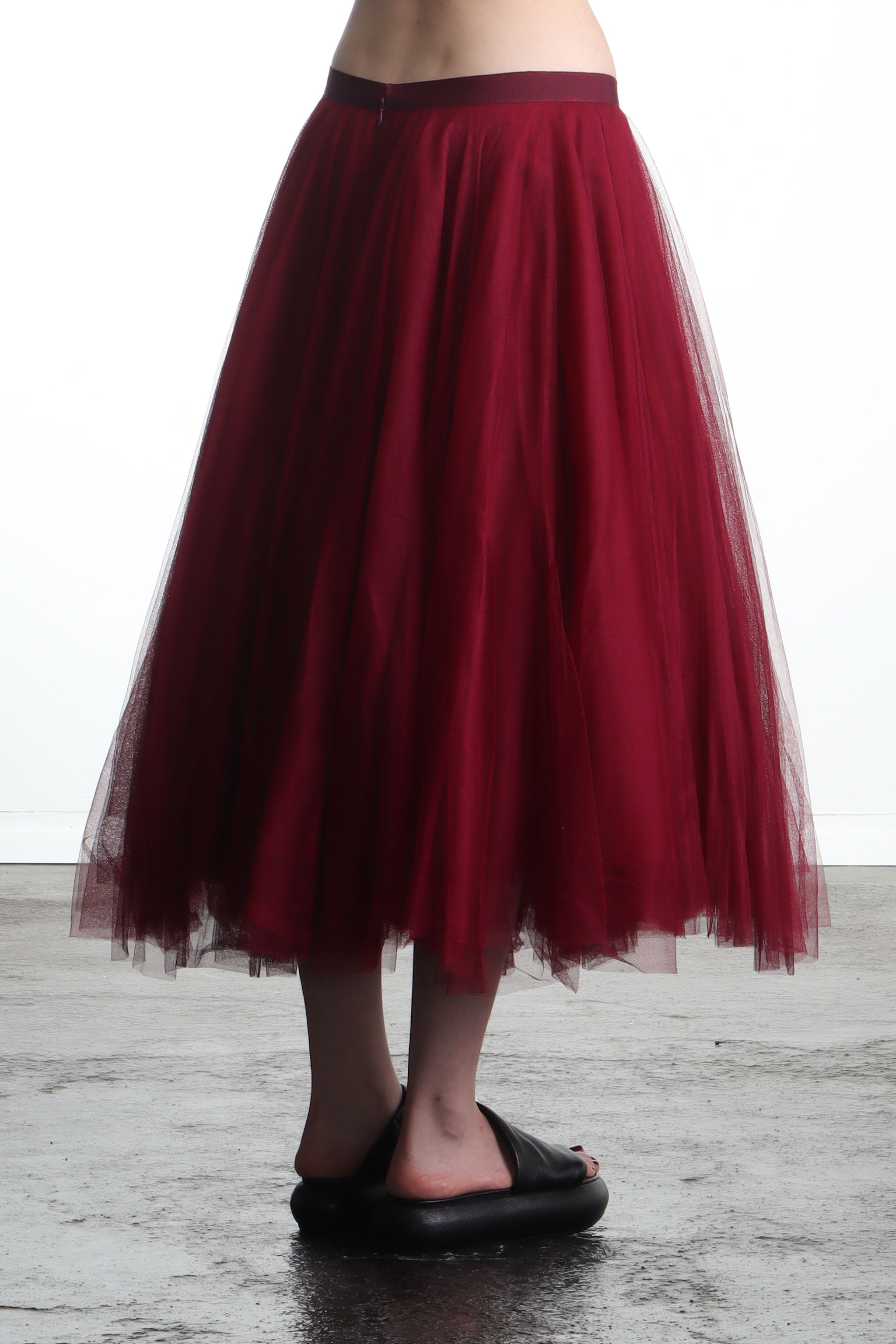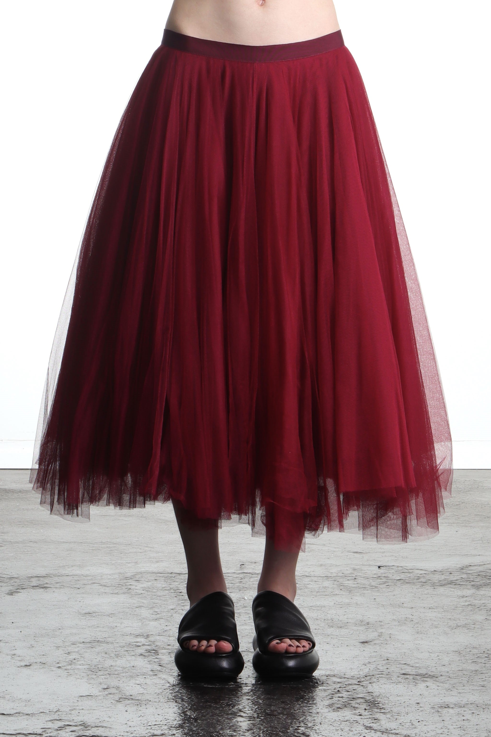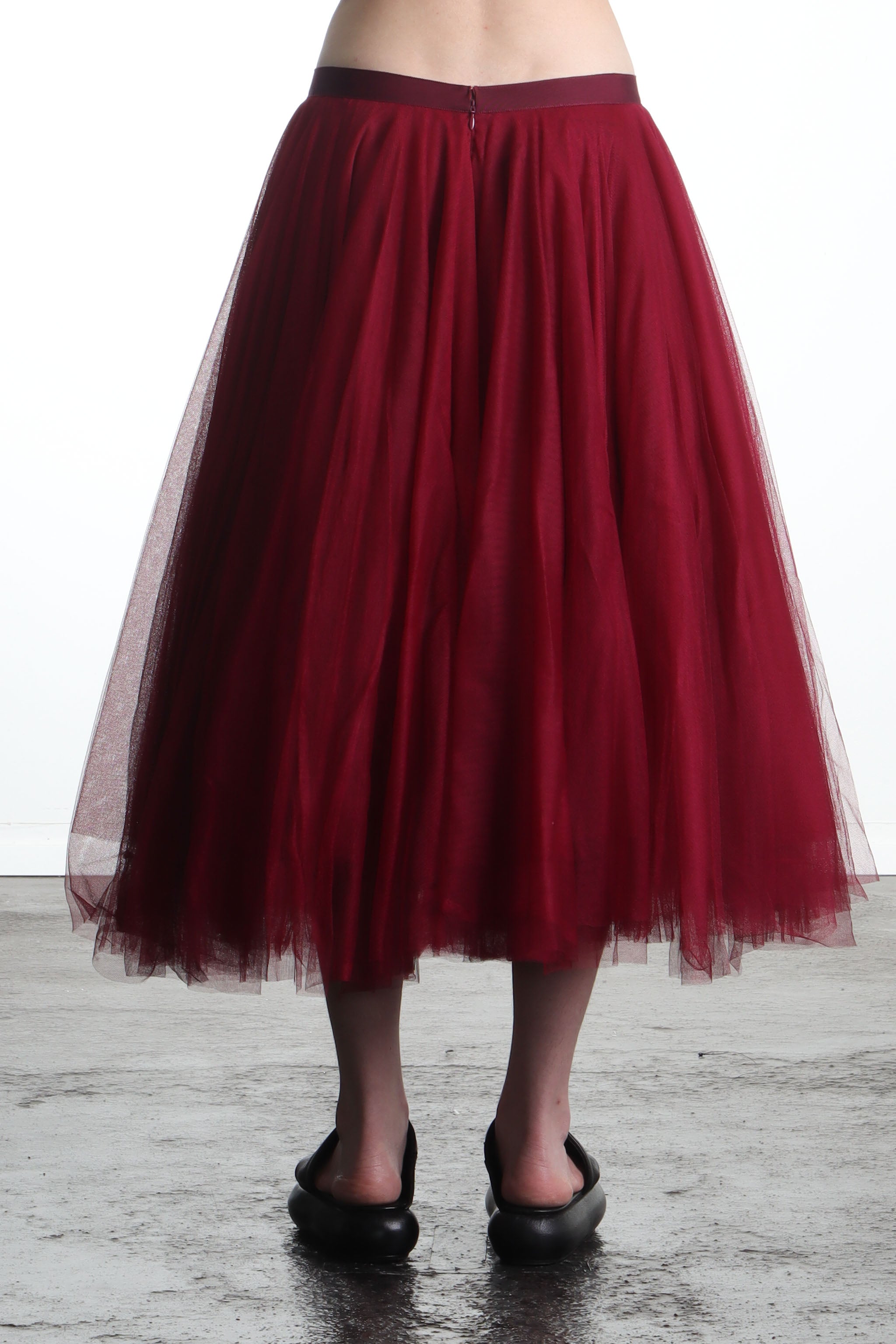 Marc Le Bihan Damen Midi Rock mit Tüll-Overlay rot