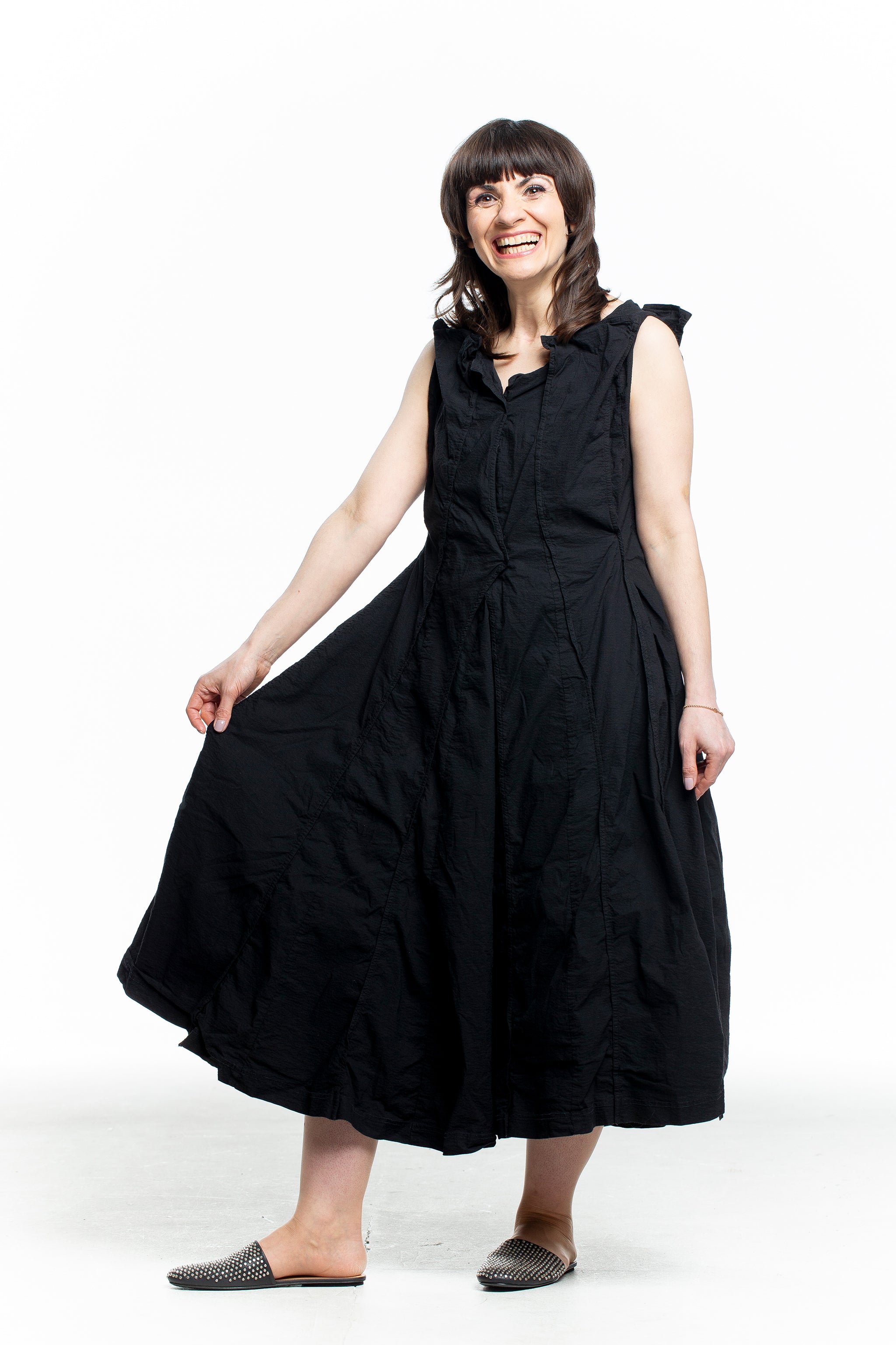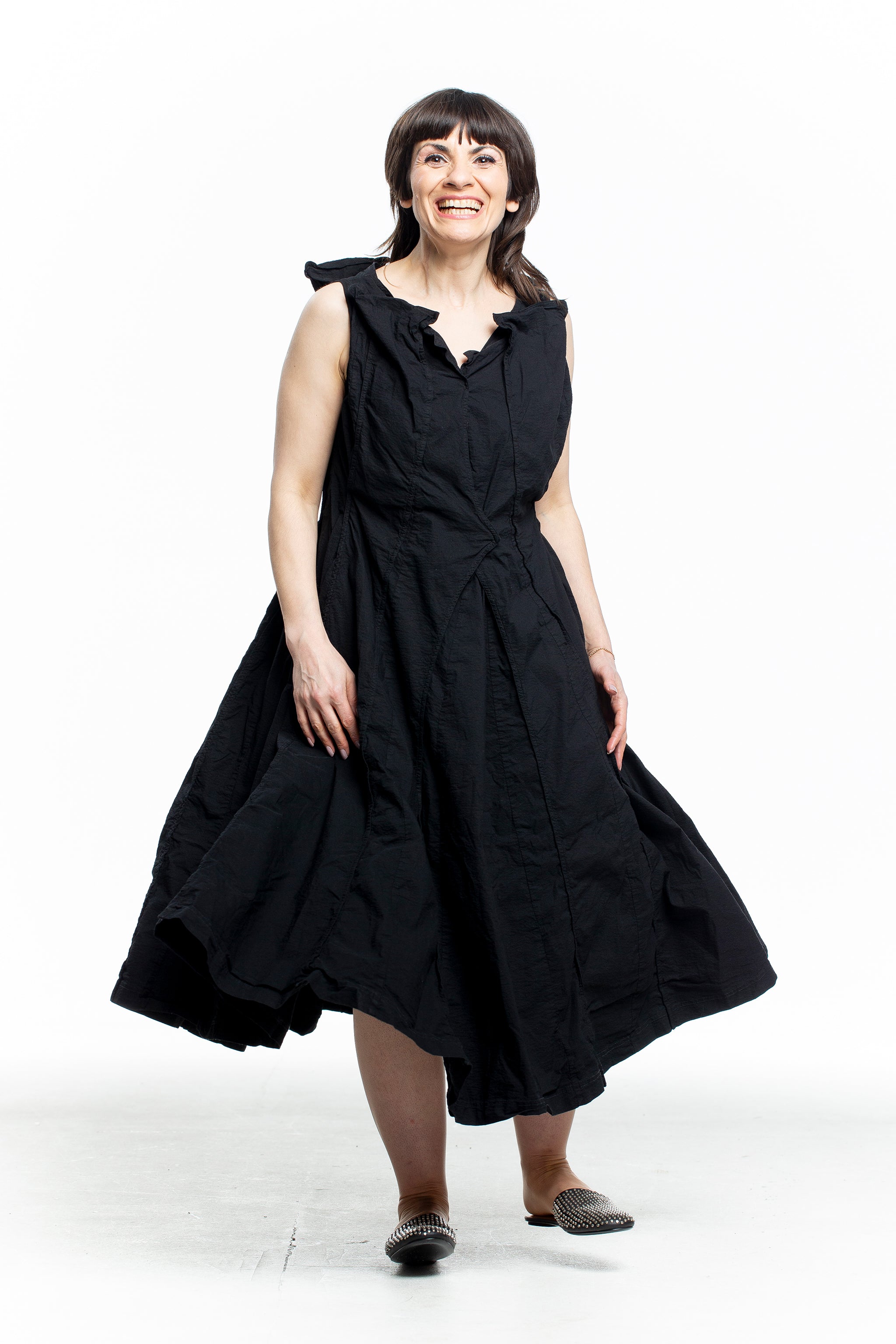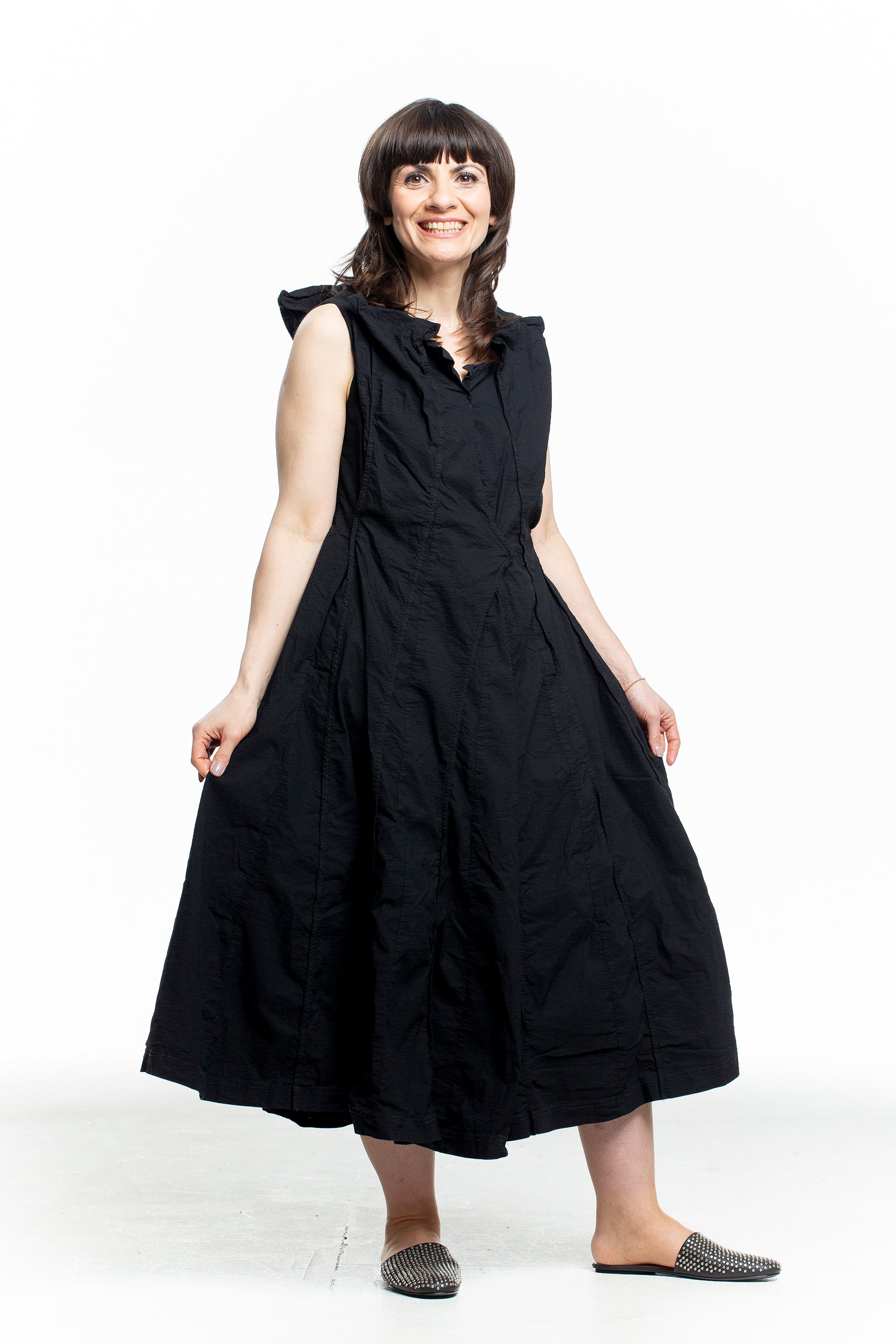 Dieses Kleid von Rundholz DIP lädt dazu ein, in Bewegung zu geraten – fließend, strukturiert und voller Ausdruck. Die perfekte Balance zwischen urbaner Coolness und femininer Avantgarde.