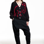 Suzusan Damen Kaschmir Strickjacke Cat schwarz‑rot