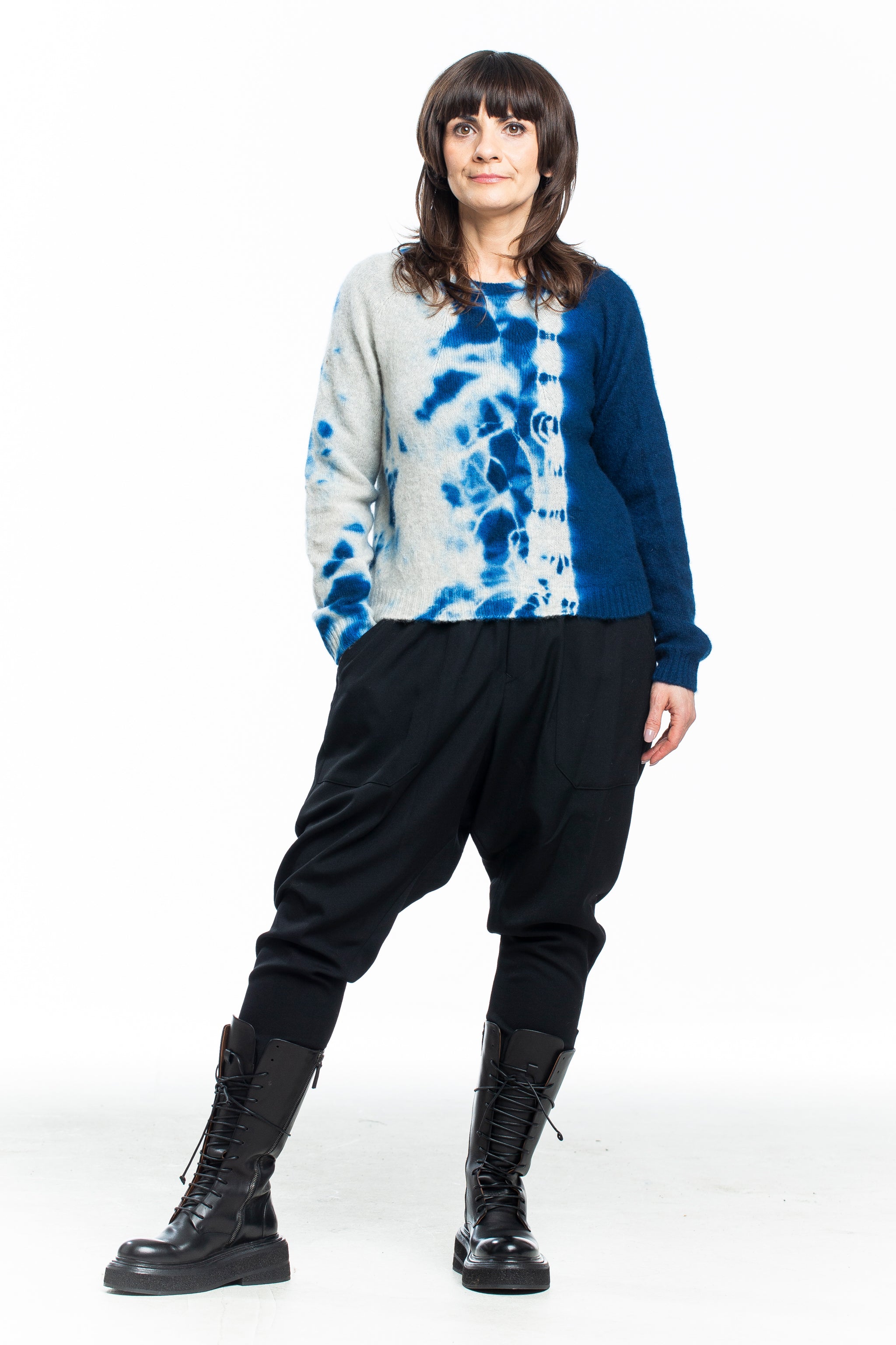 Eye Catcher ist die aufwendige Madara Shibori Färbetechnik, die den edlen Batiklook kreiert. Durch die traditionelle Handarbeit ist jeder Pullover ein echtes Unikat. Die oversized Linie fällt durch das weiche Material in sich zusammen und schmeichelt jeder Figur. Ein stylischer Pulli, der sich perfekt zu vielen angesagten Outfits kombinieren lässt.