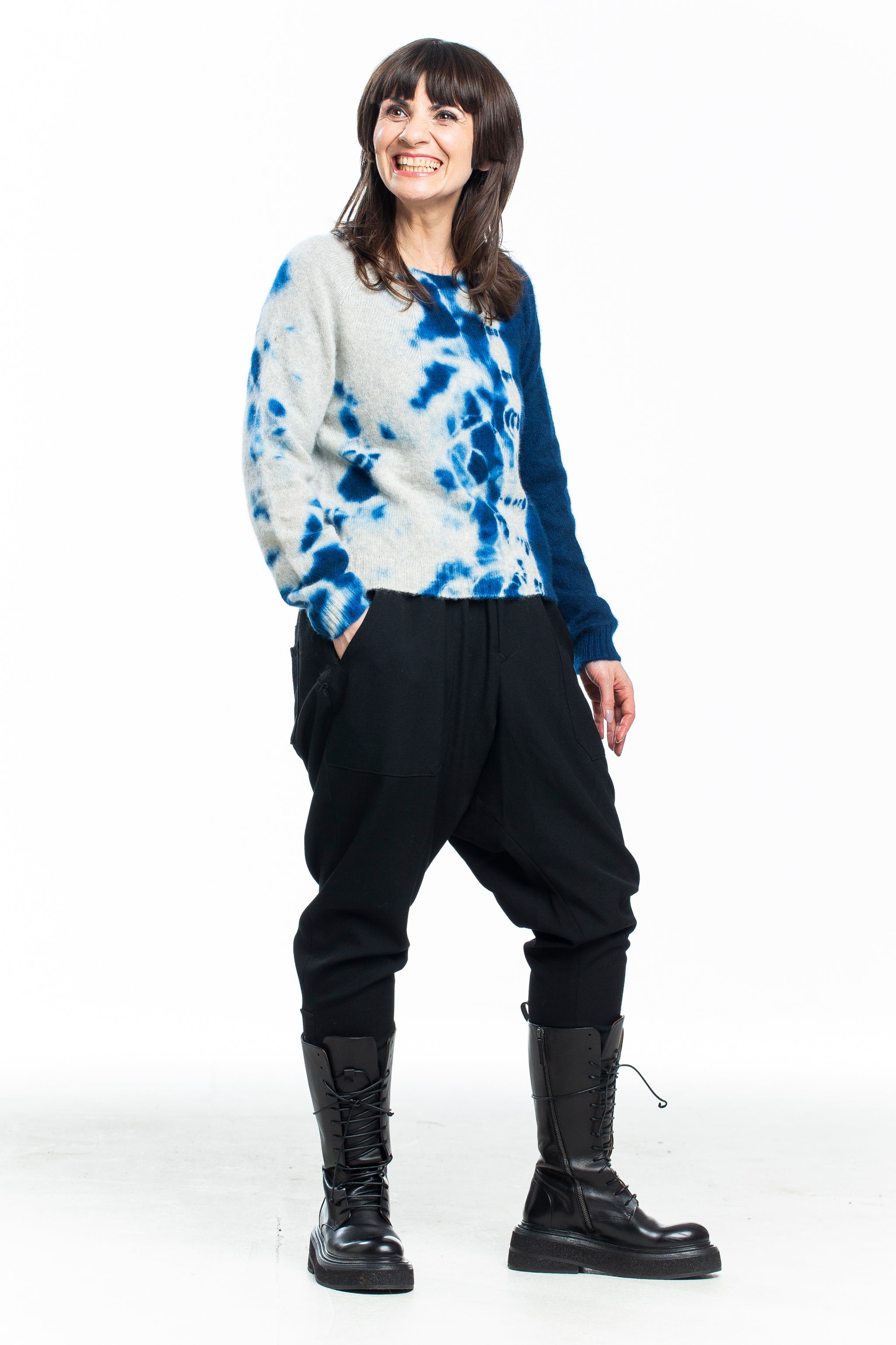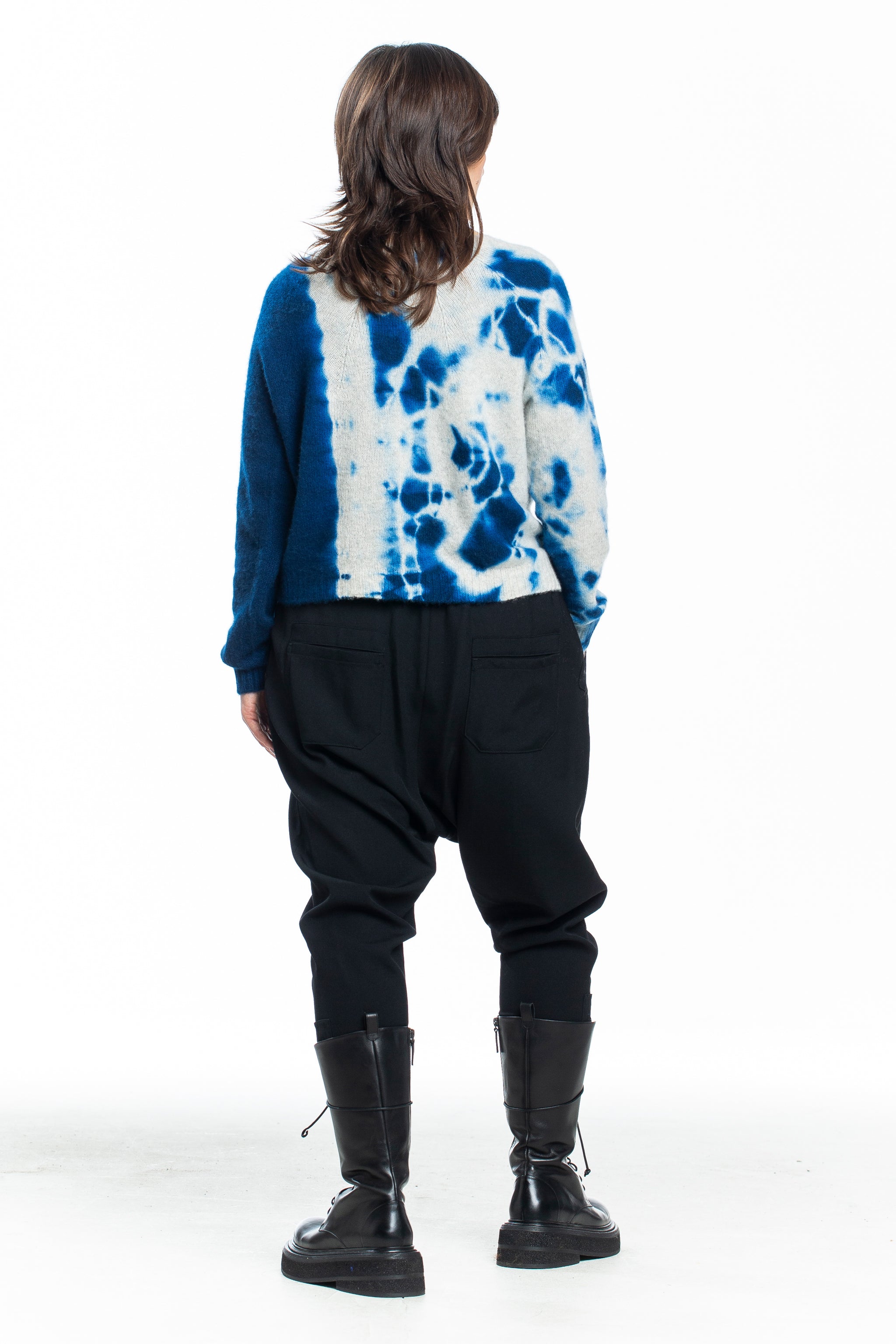 Suzusan Damen Kaschmir Pullover Madara Shibori offwhite blue