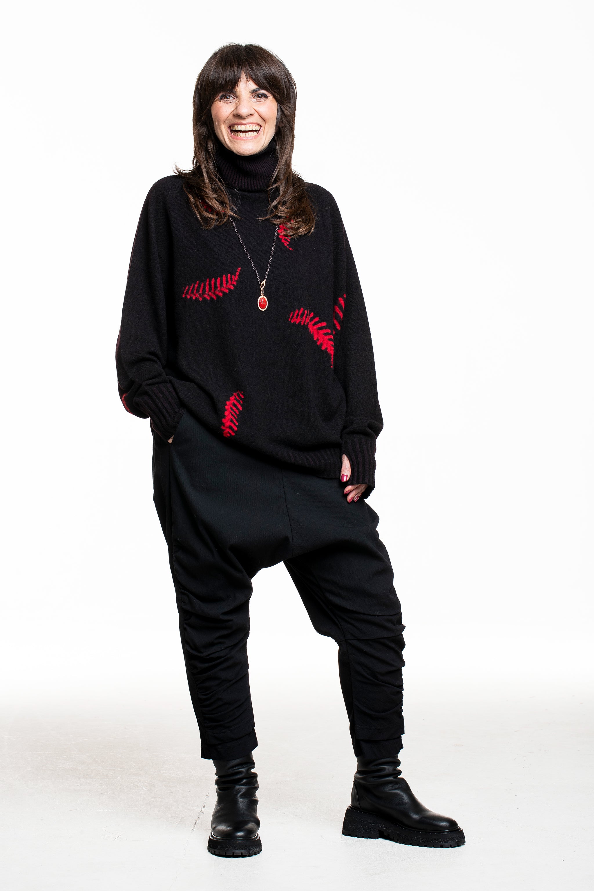 Suzusan Damen Kaschmir Rollkragenpullover Feather schwarz‑rot