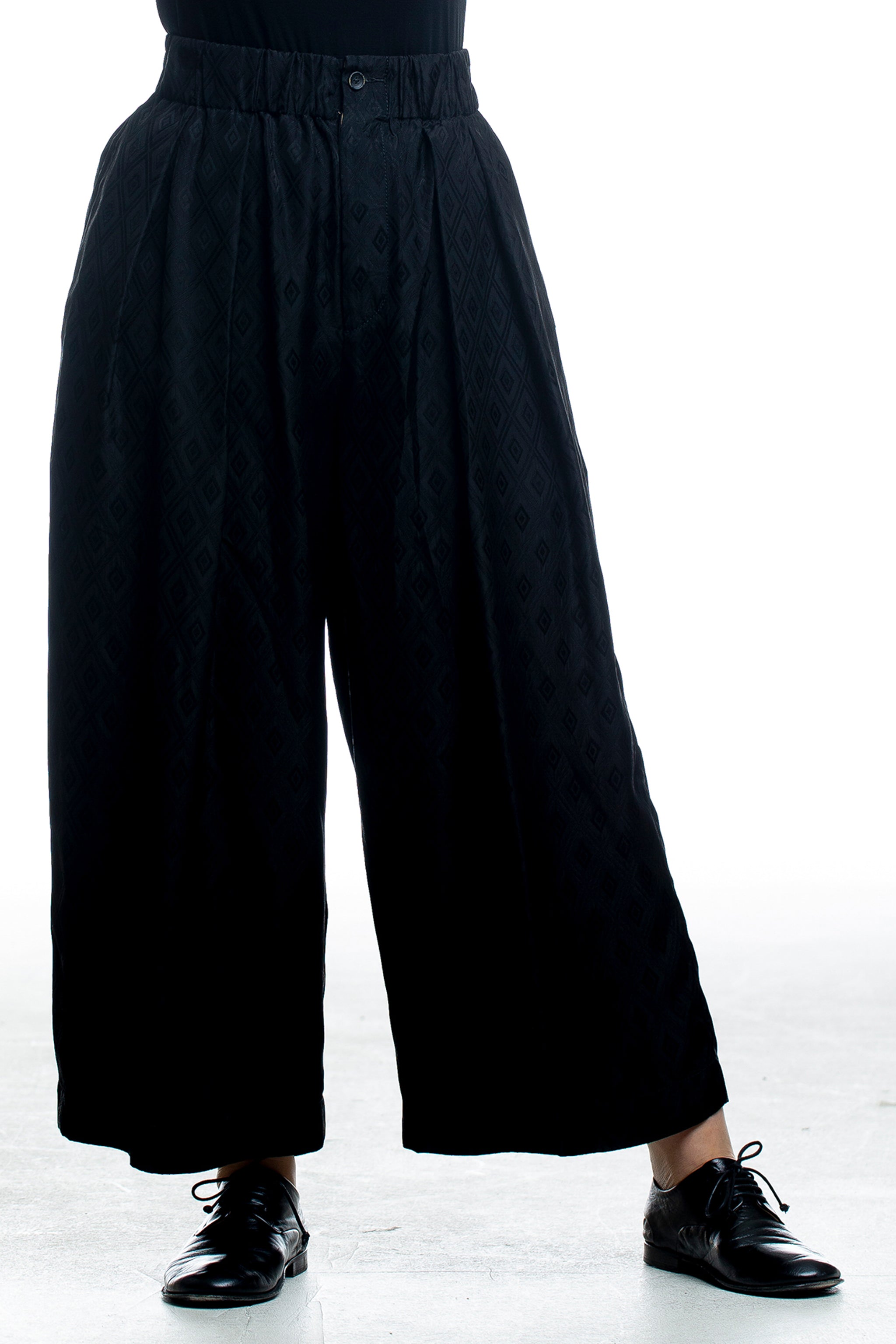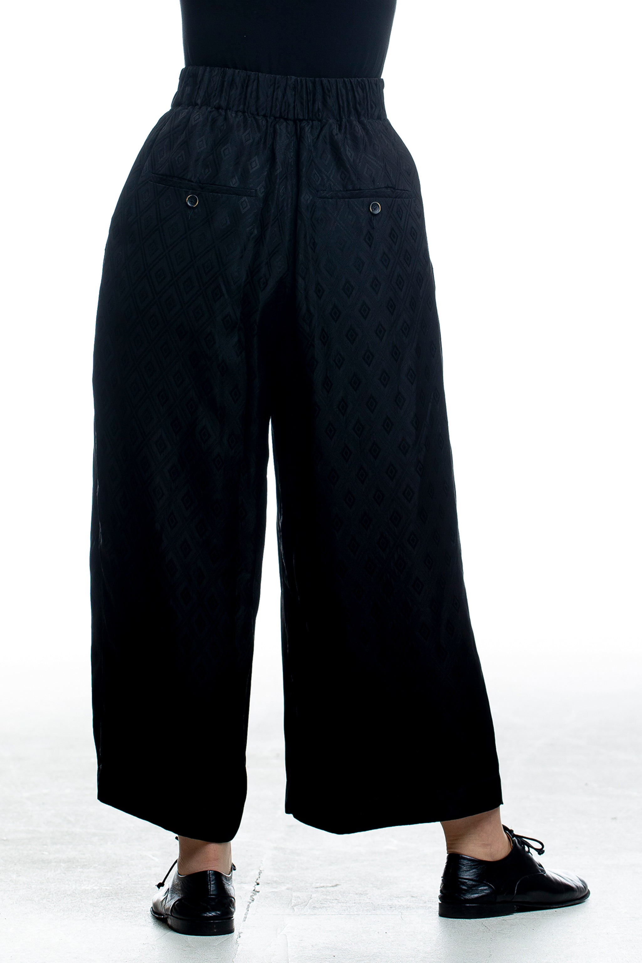 Schwarze Designerhose von Uma Wang mit weiter Silhouette und strukturierten Details – für charakterstarke Looks.