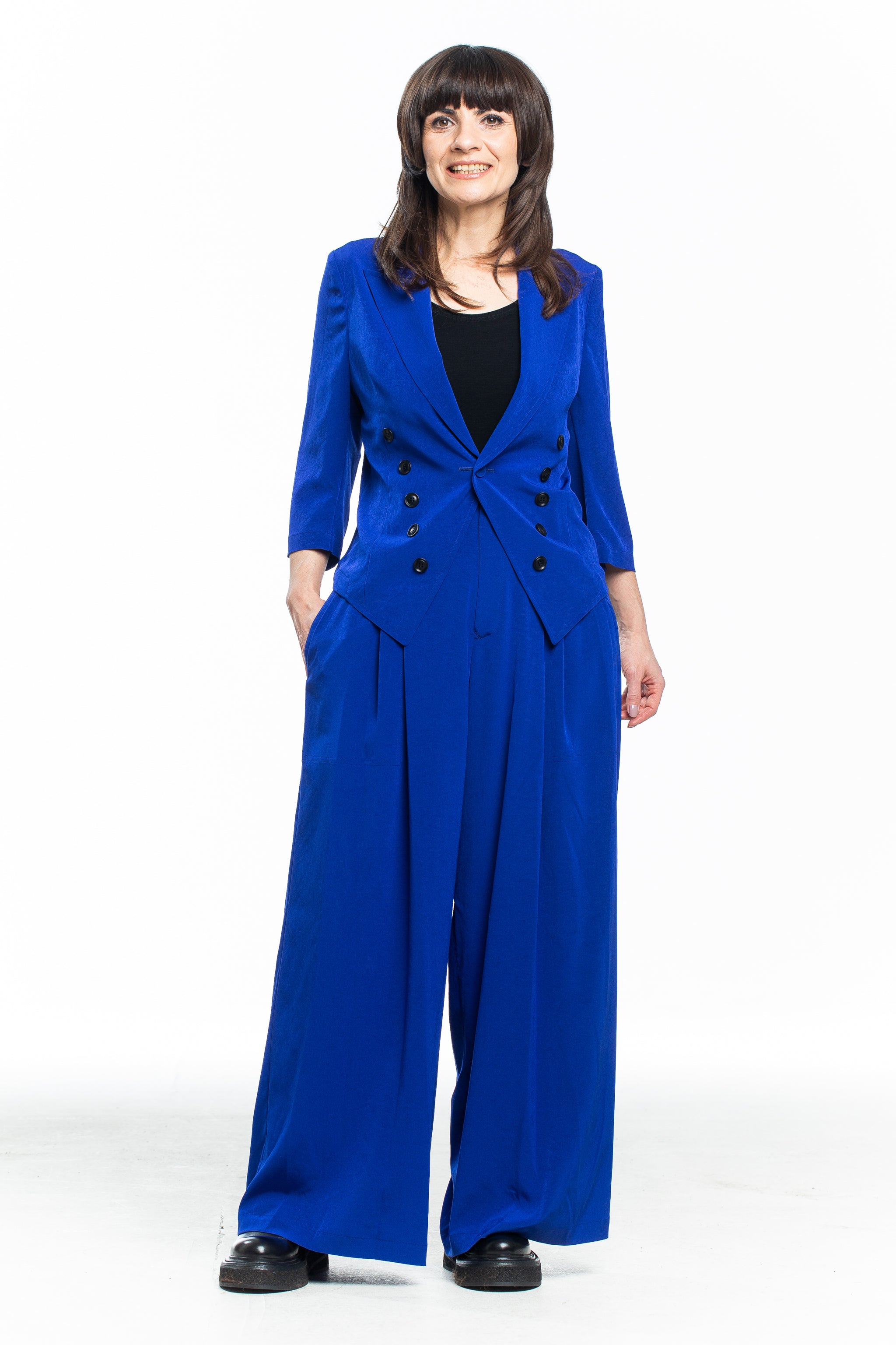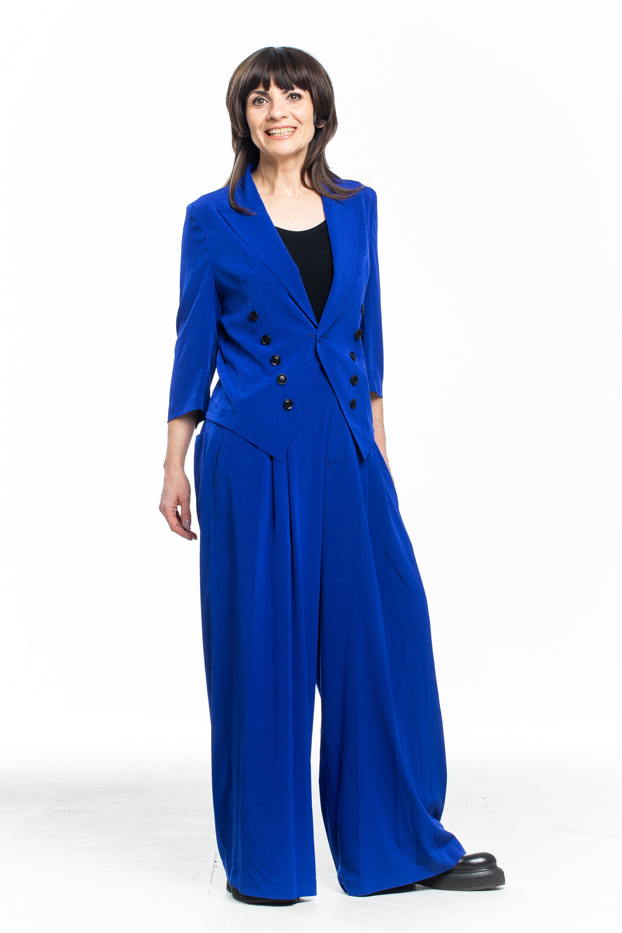 Kurze zweireihige Blazerjacke von Y´s Yohji Yamamoto in Royal Blau.