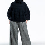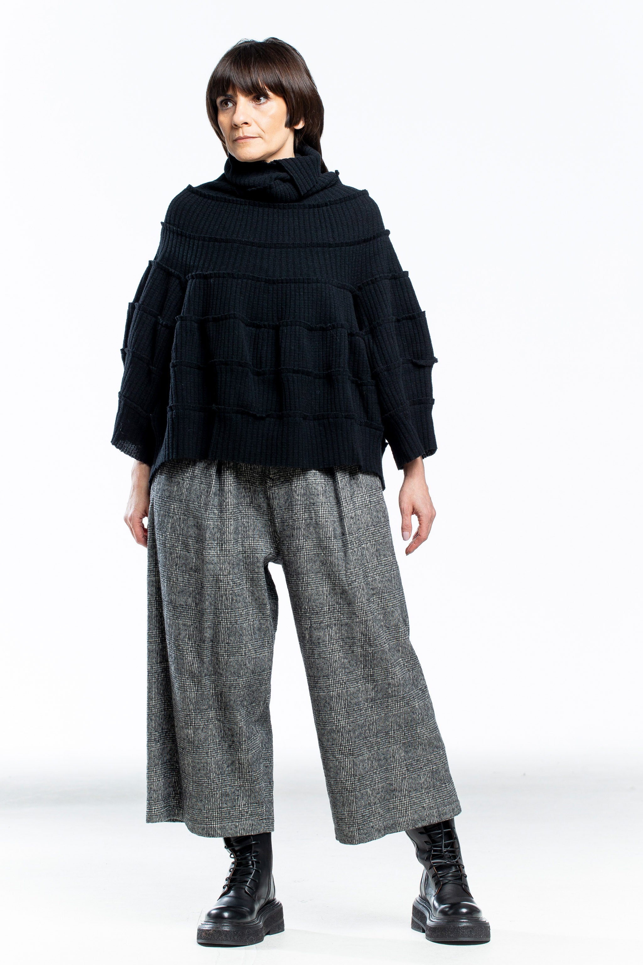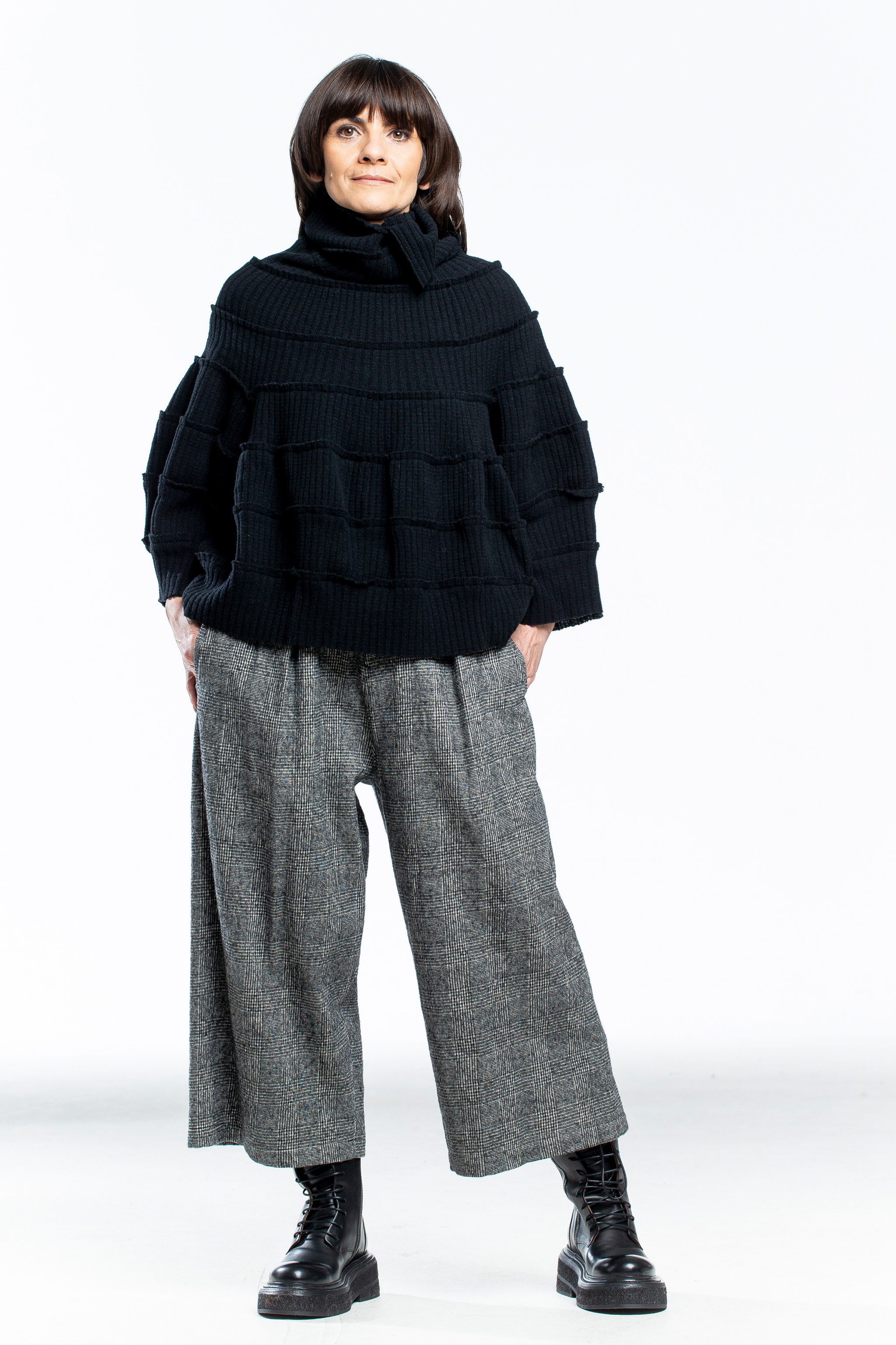 Hier trifft perfekte Schnittführung auf Avantgarde und wird von perfekter Bequemlichkeit unterstrichen. Dieser Pullover besticht vor allem durch die bewusst, überweite Schnittführung und das gestrickten Designelementen.